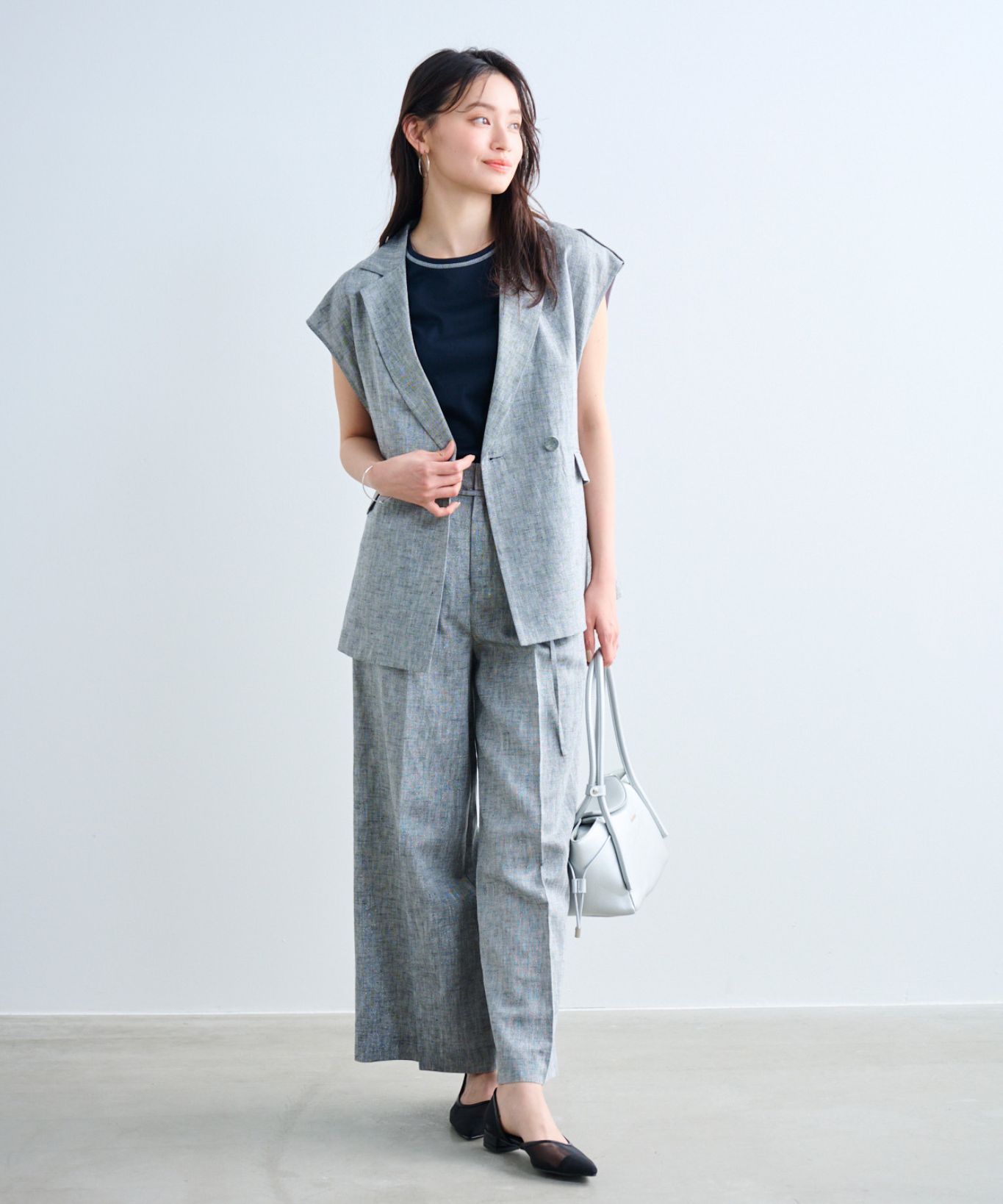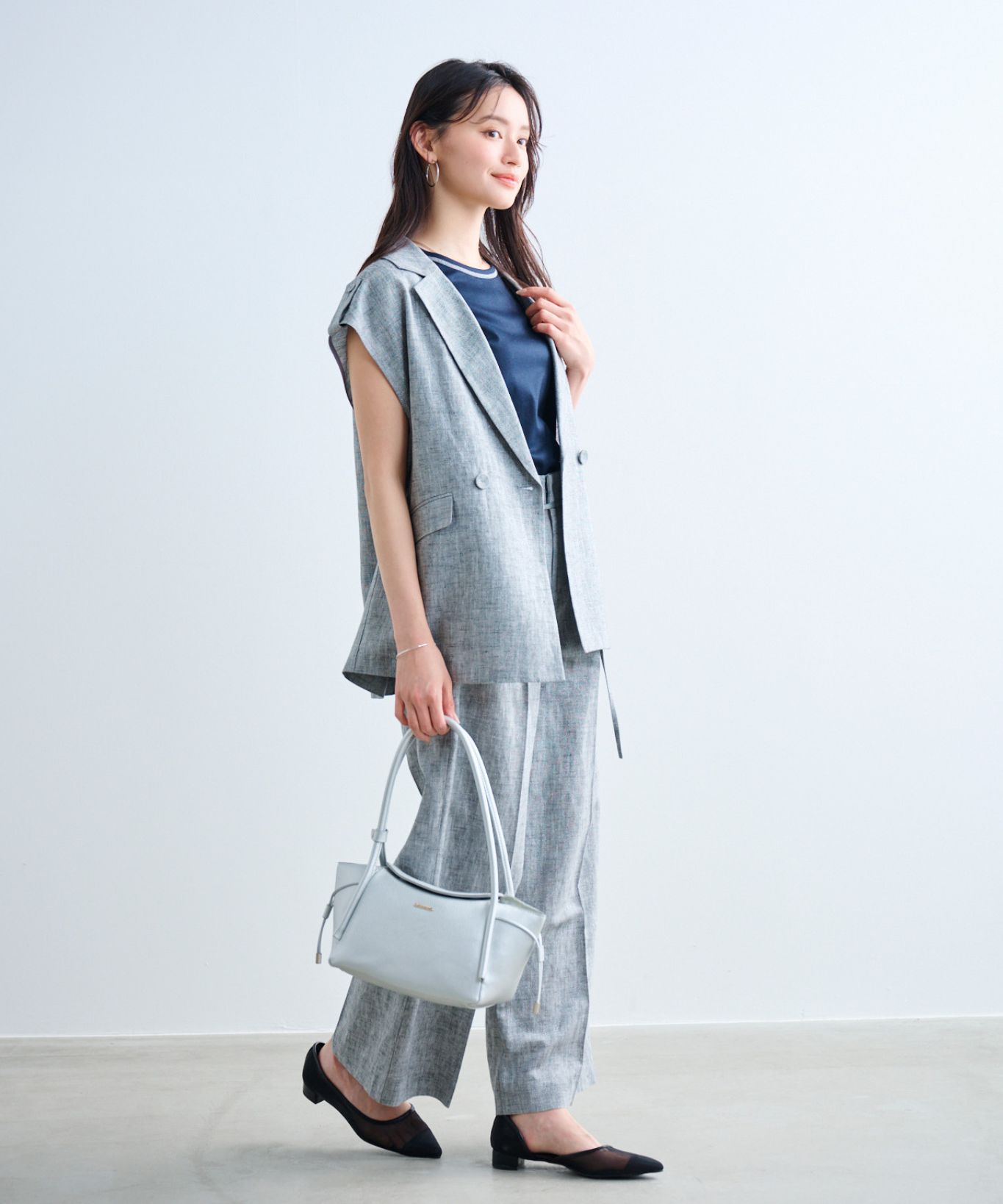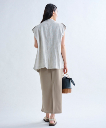 ・ラメ糸のきらめきを織り込んだ麻混素材です。セルロースを含むことで、柔らかくしなやかな風合いに仕上げています。