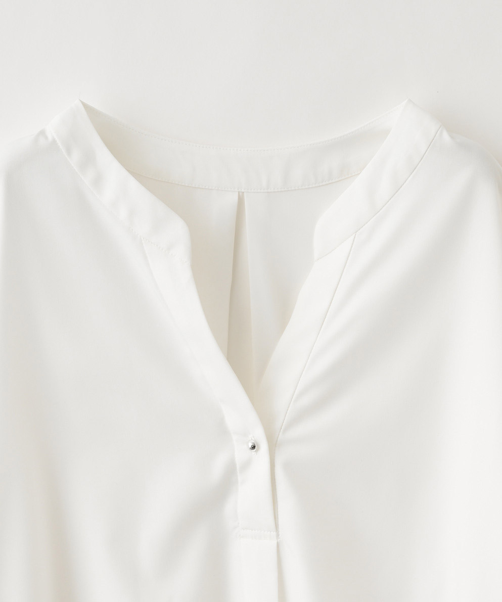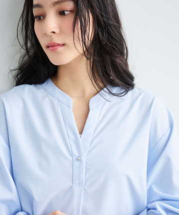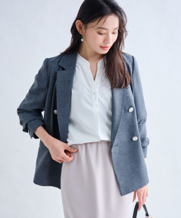 ・衿元のスキッパーデザインは、きちんと感がありながらも程良い抜け感をプラスしてくれる、絶妙なあき具合。