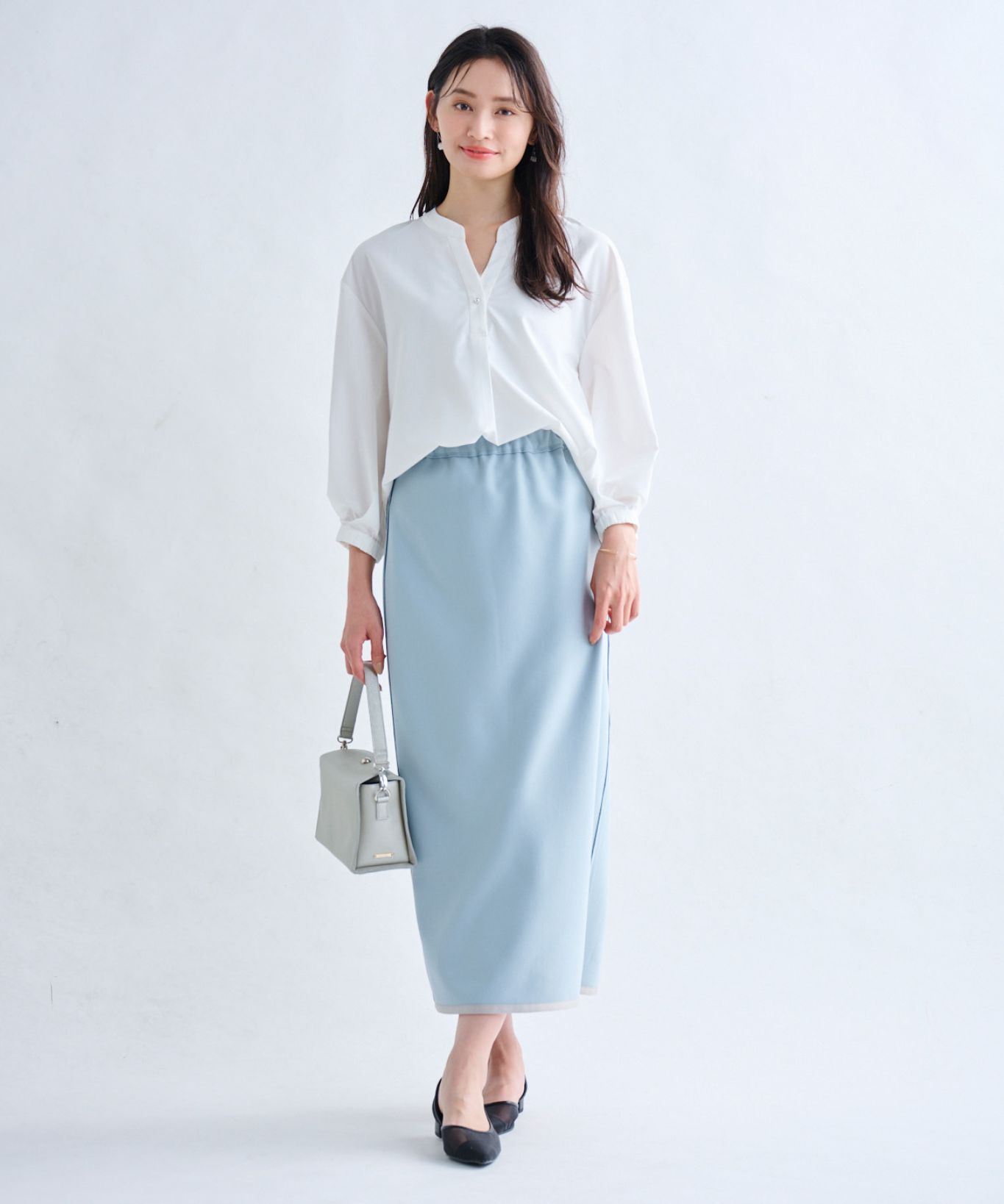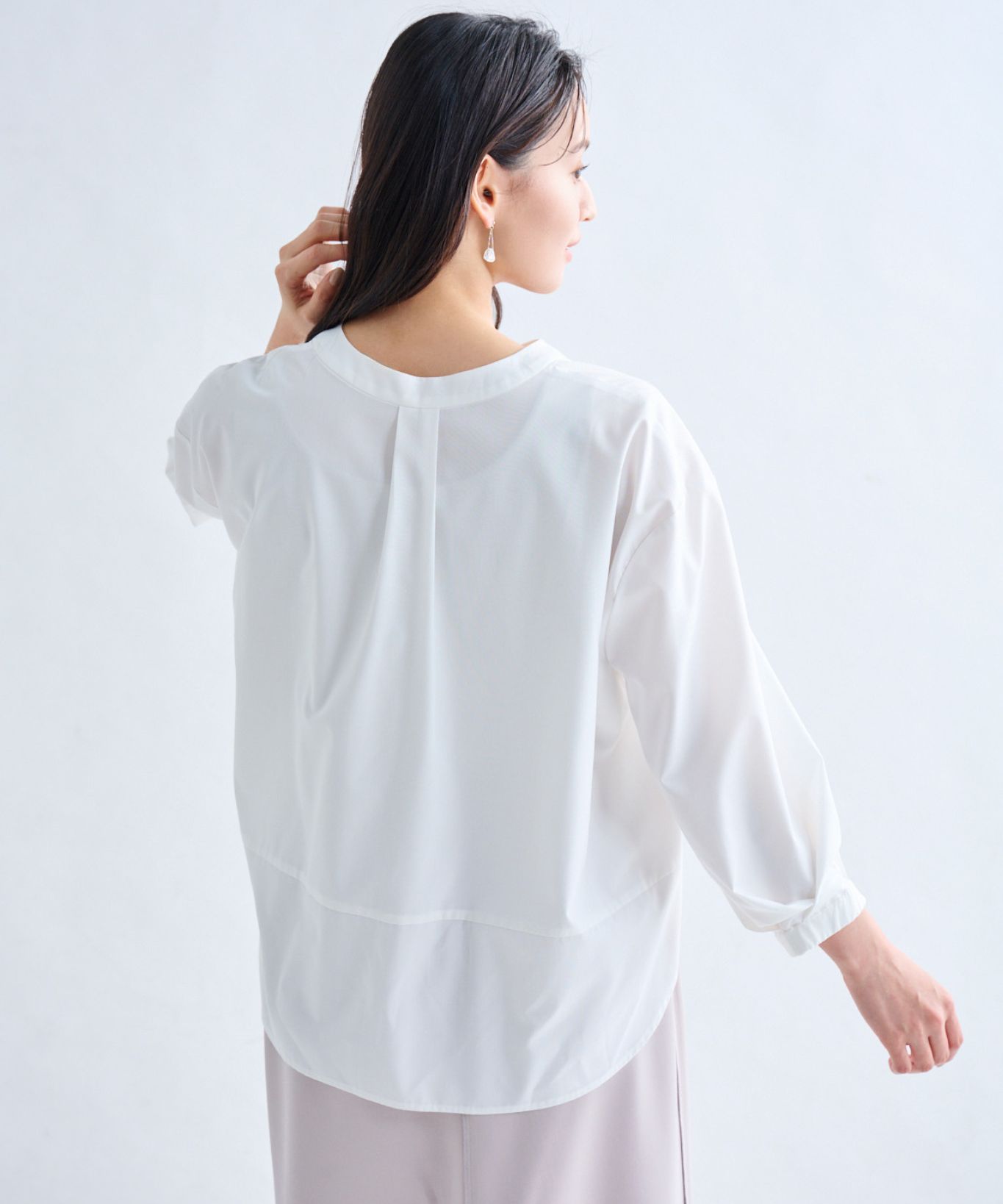 ・ヒップを隠しながらすっきり見えするように前後差をつけ、身体のラインを拾わずにストレスフリーな着心地です。