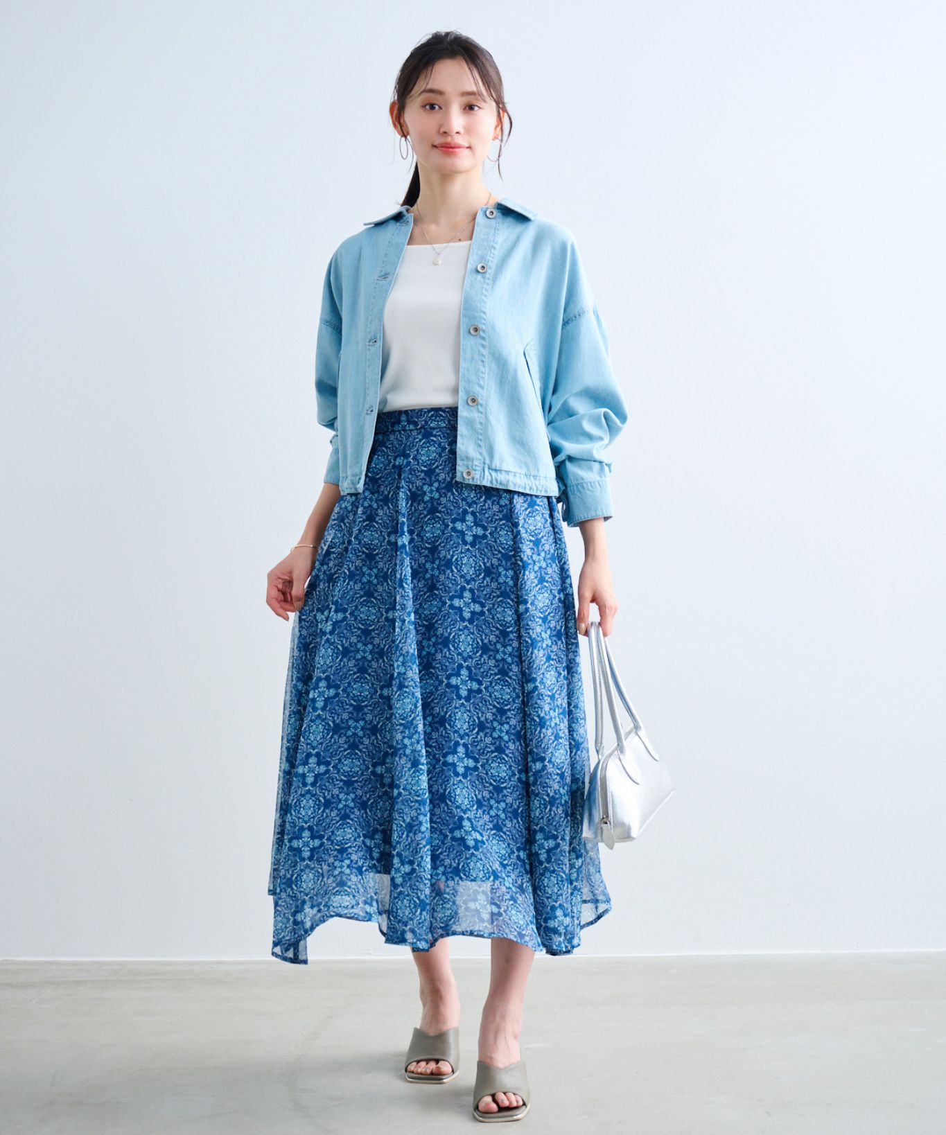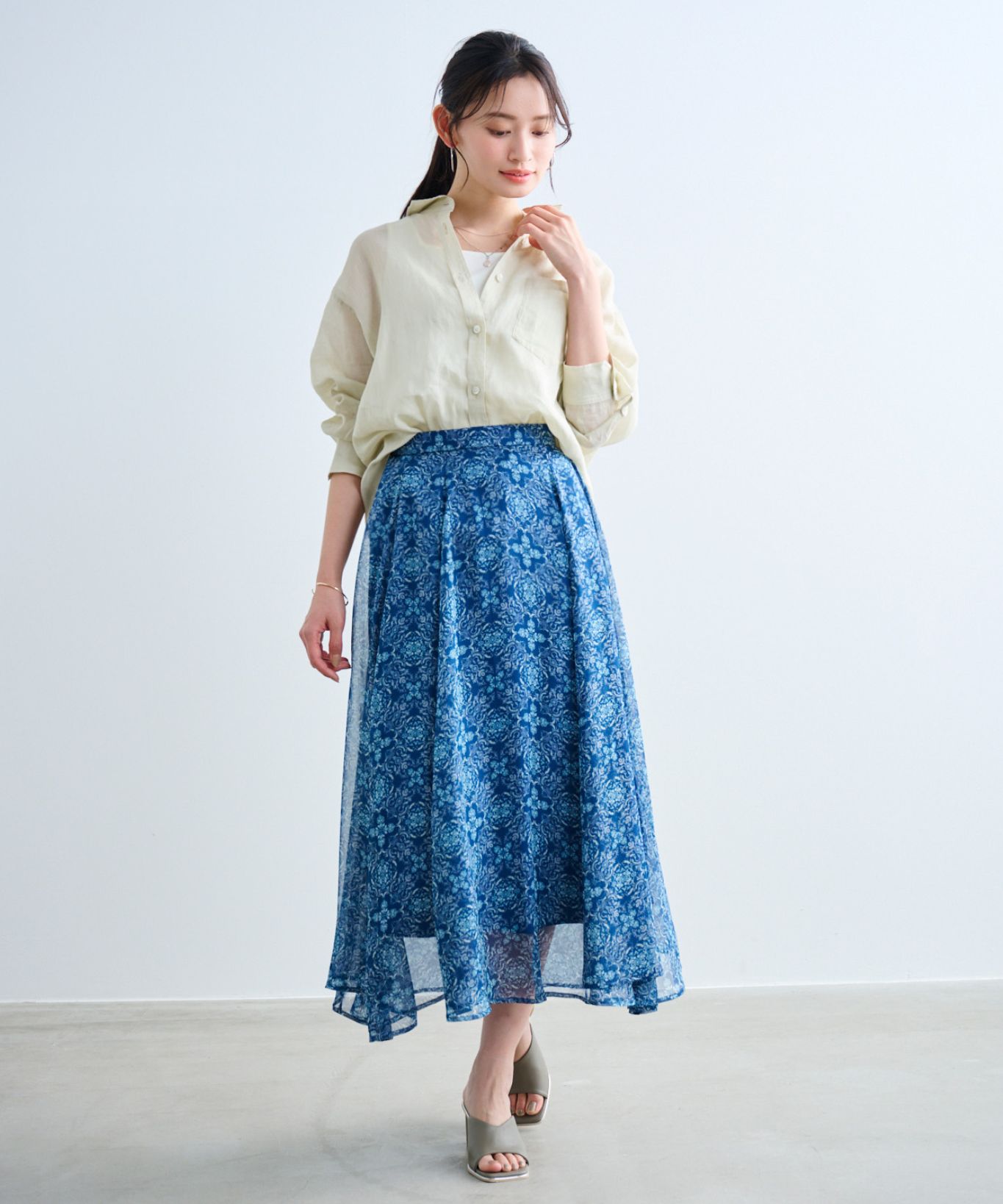 ・腰周りは大人っぽくすっきりとしたサイズ感で、裾にかけてたっぷりと分量を出したシルエットで、揺れるフレア感もポイントです。