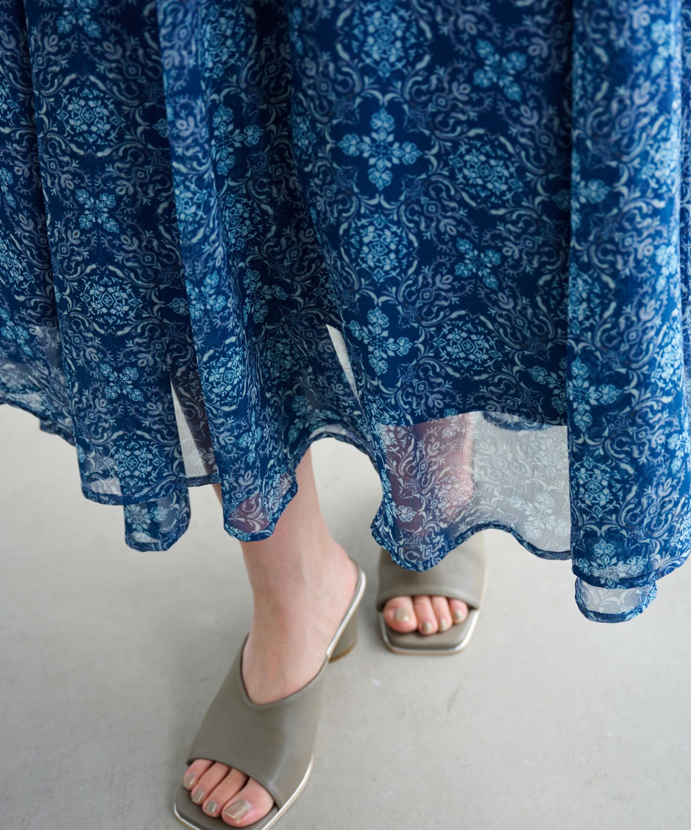 ・贅沢に生地を使用した分量感のあるシルエットが、歩くたびに優雅に揺れ、女性らしさを引き立てます。