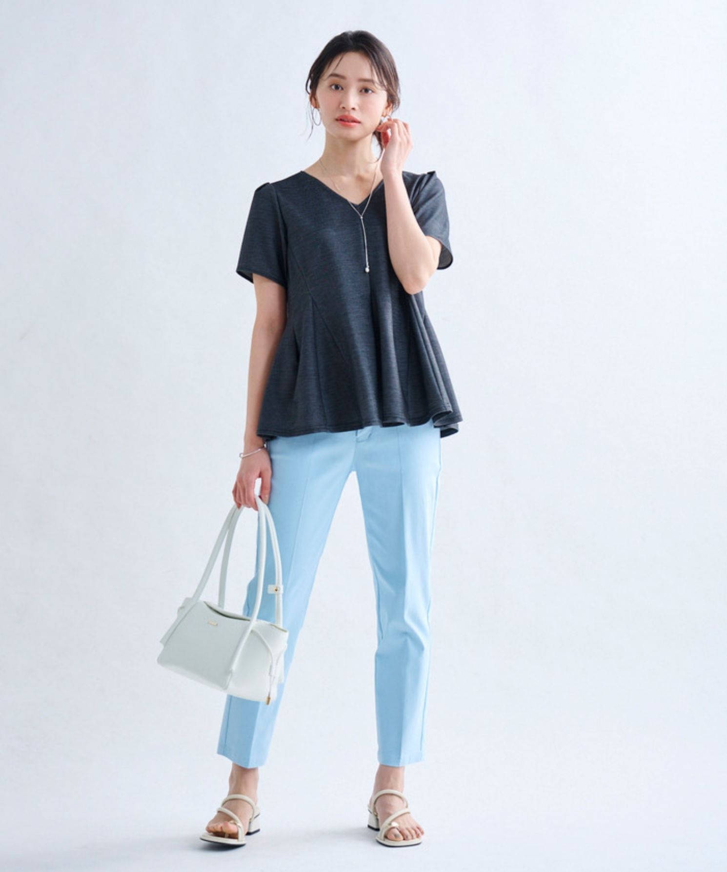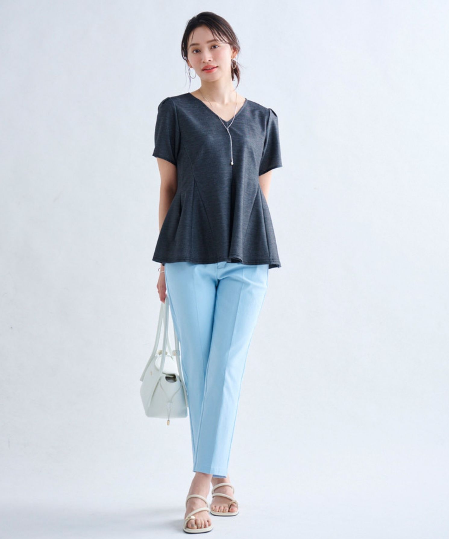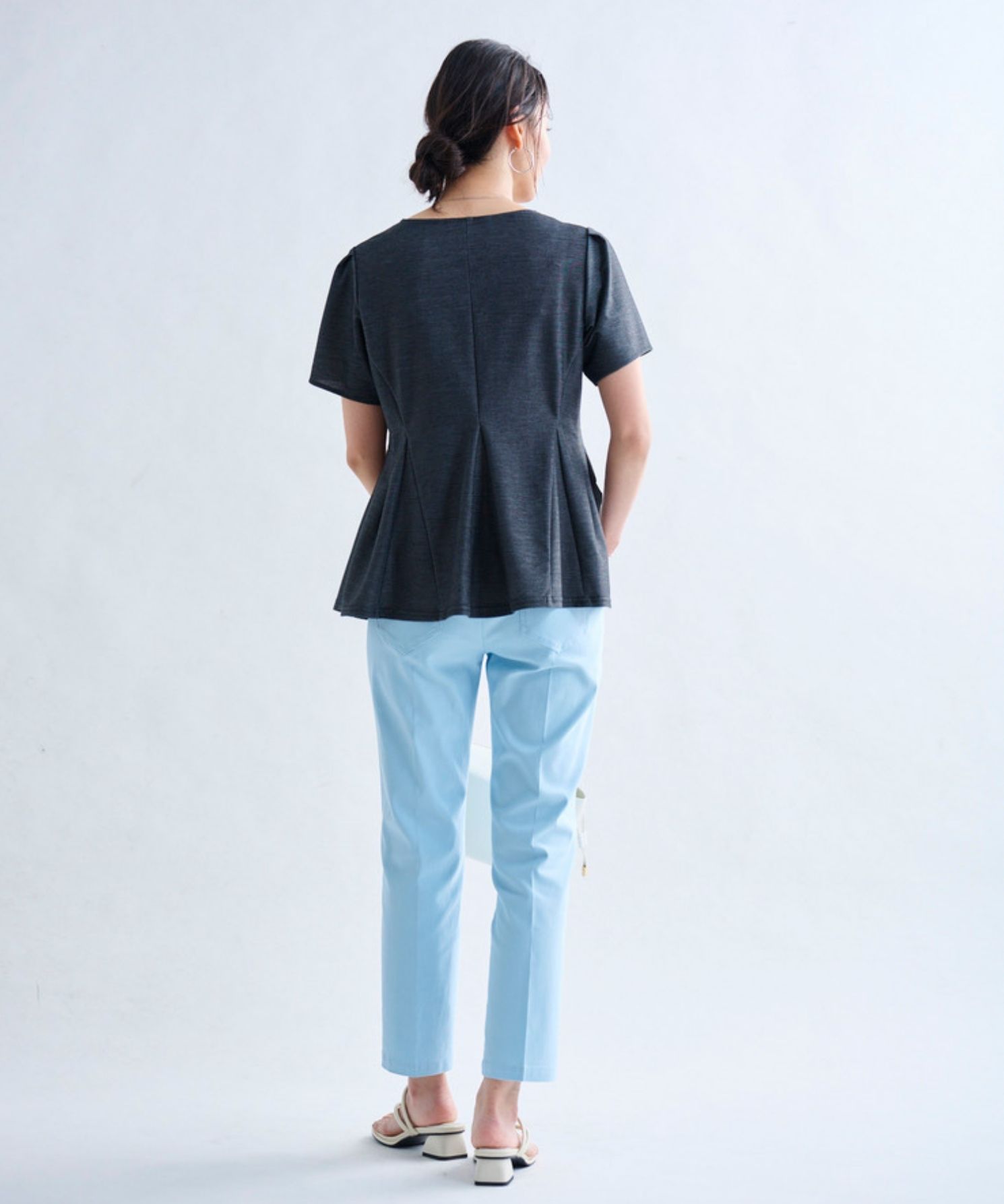 ・膝の絞り位置を少し高めに設定することで、膝下が長く見えるようシルエットにこだわって仕上げました。