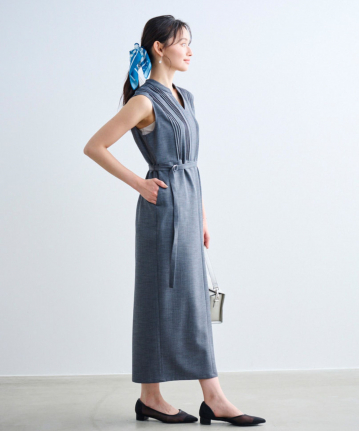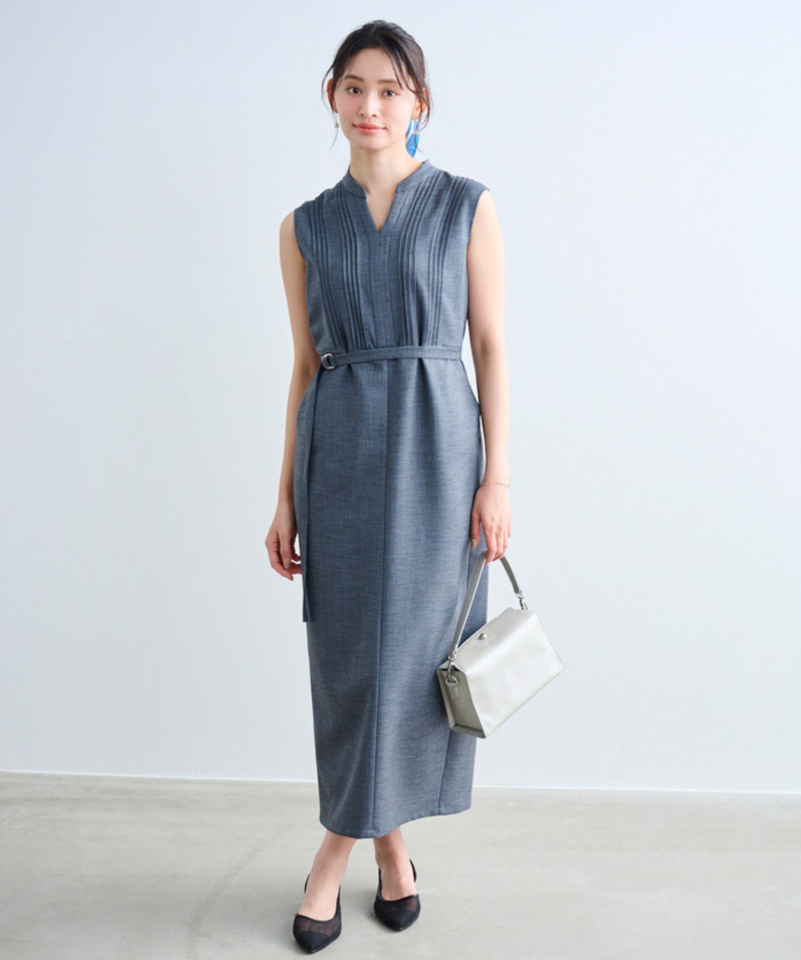 ・フロントにピンタックを施したIラインシルエットのワンピースです。