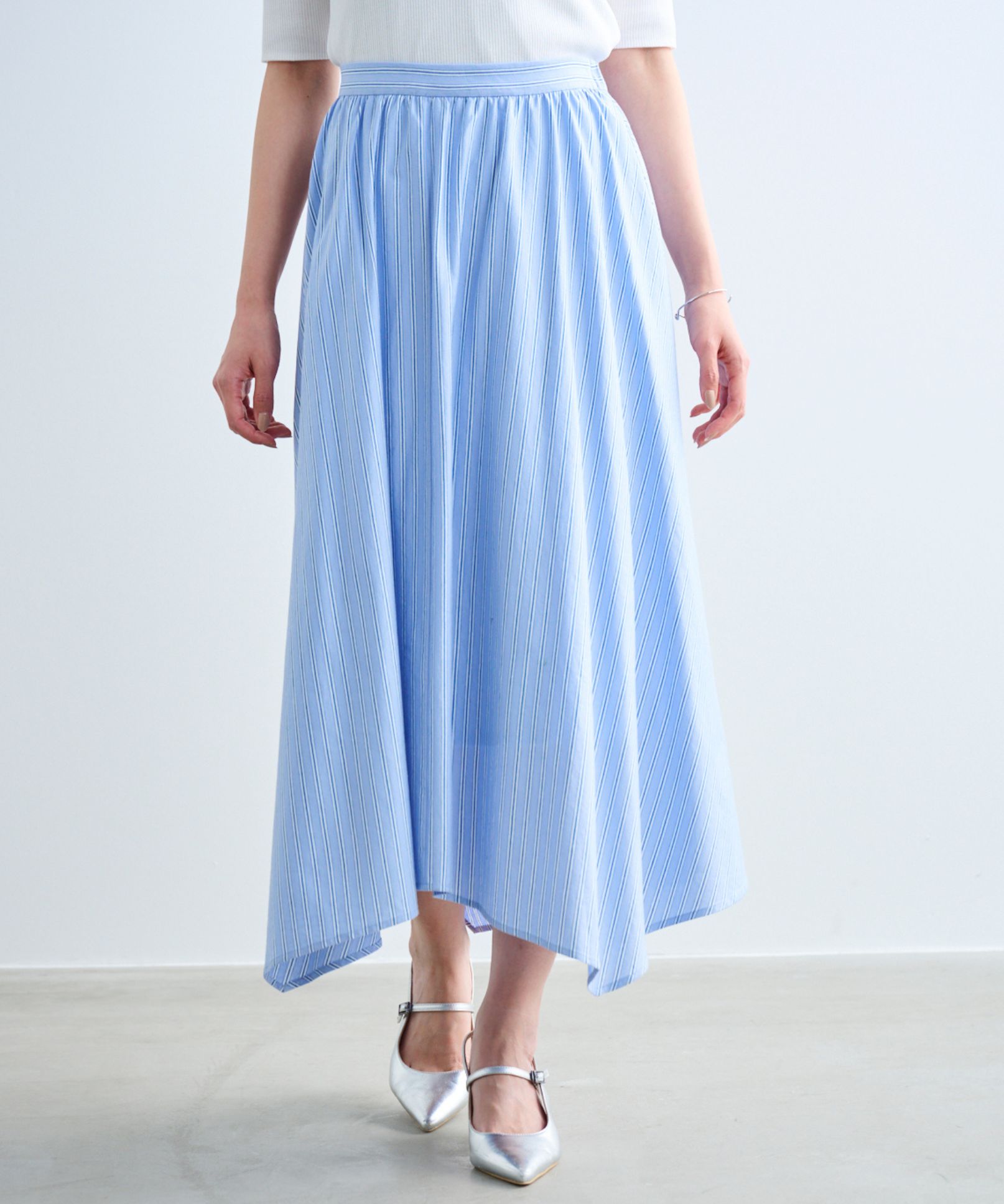 ストライプギャザーイレヘムカットソースカート