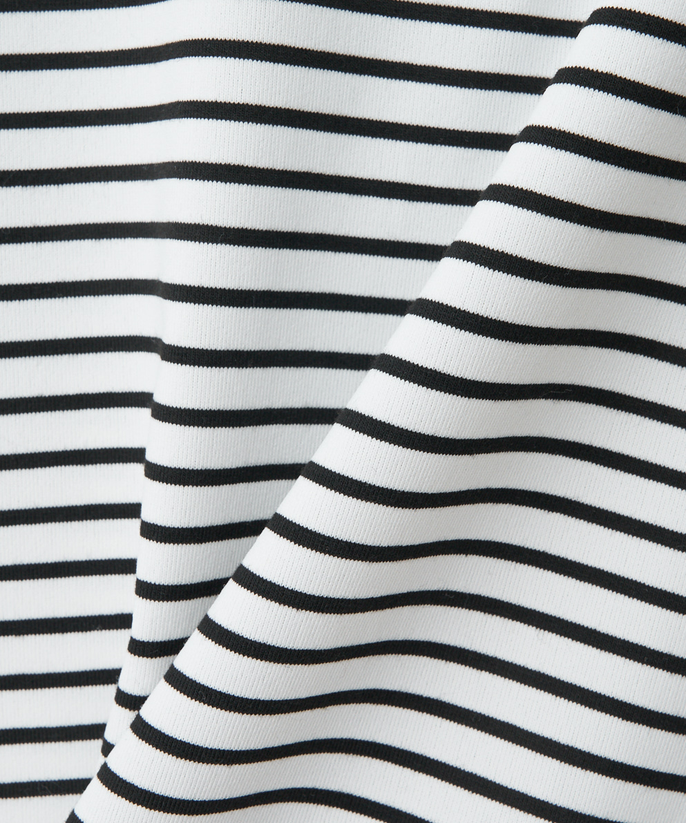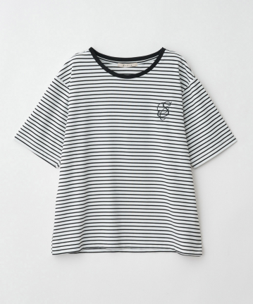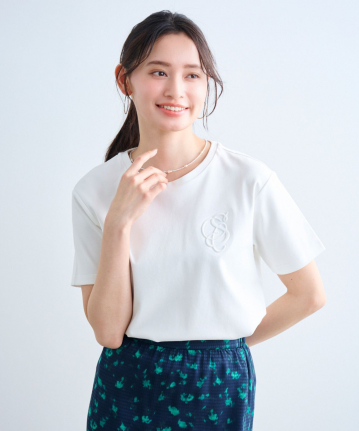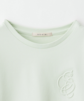 ・オフ、ライム、スレートの無地にはエンボス加工、ボーダーには刺繍を施し、定番Tシャツに遊び心を落とし込んだレディーライクな1枚。