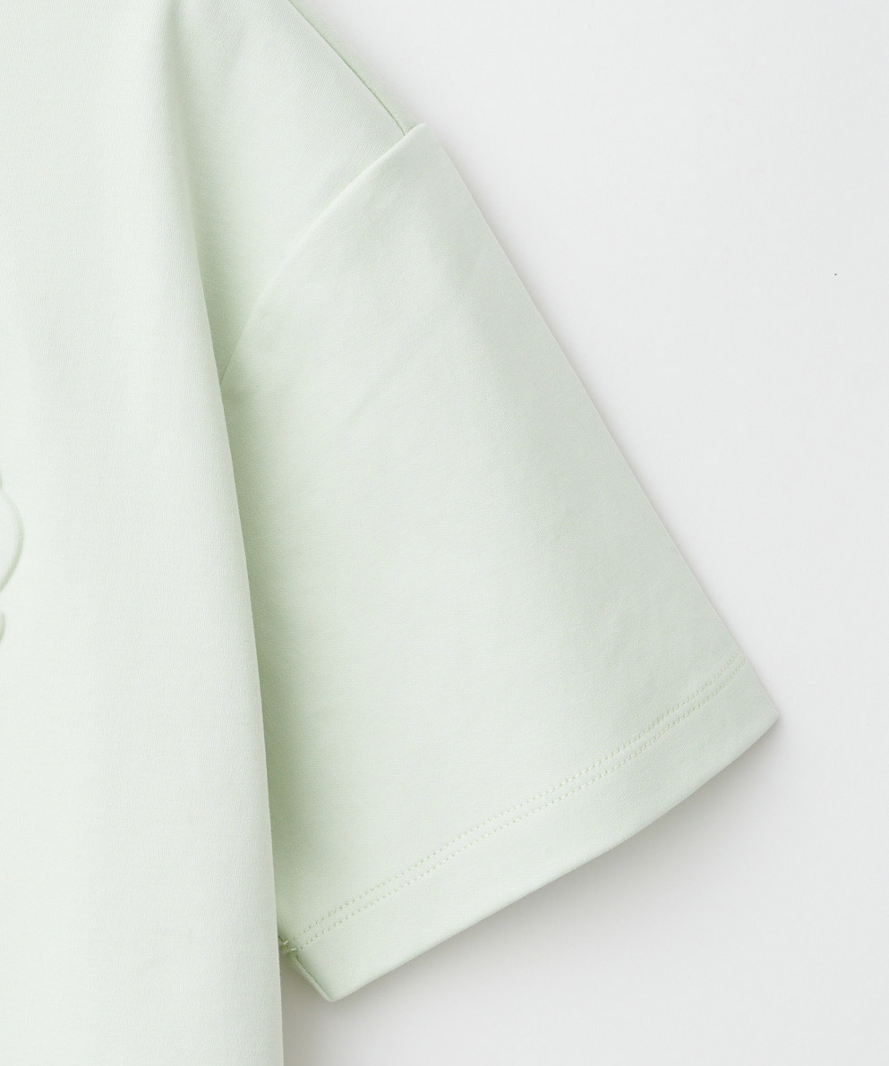 ・立体的に表現されたエンボスロゴと、刺繍のロゴがアクセントをプラスするTシャツです。