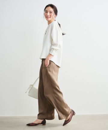 ・スカートでもパンツでもバランスの取りやすいやや後下がりのデザインで、気になるヒップ周りを自然にカバーし、サイドスリットで抜け感を演出。