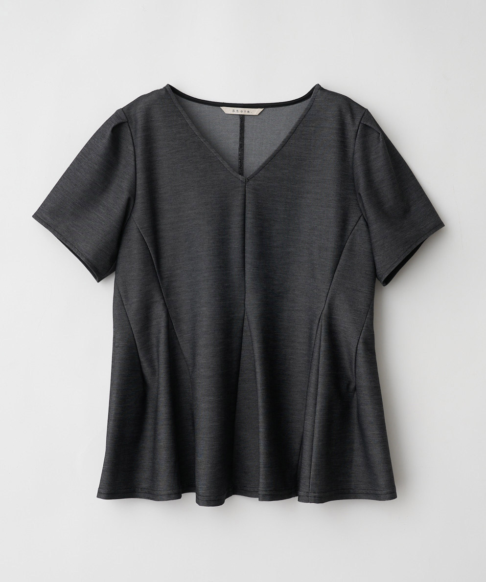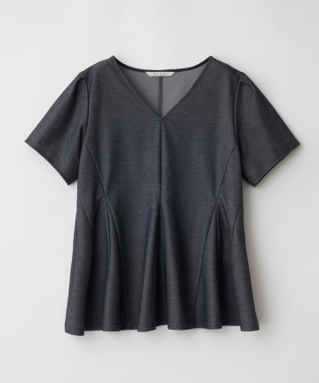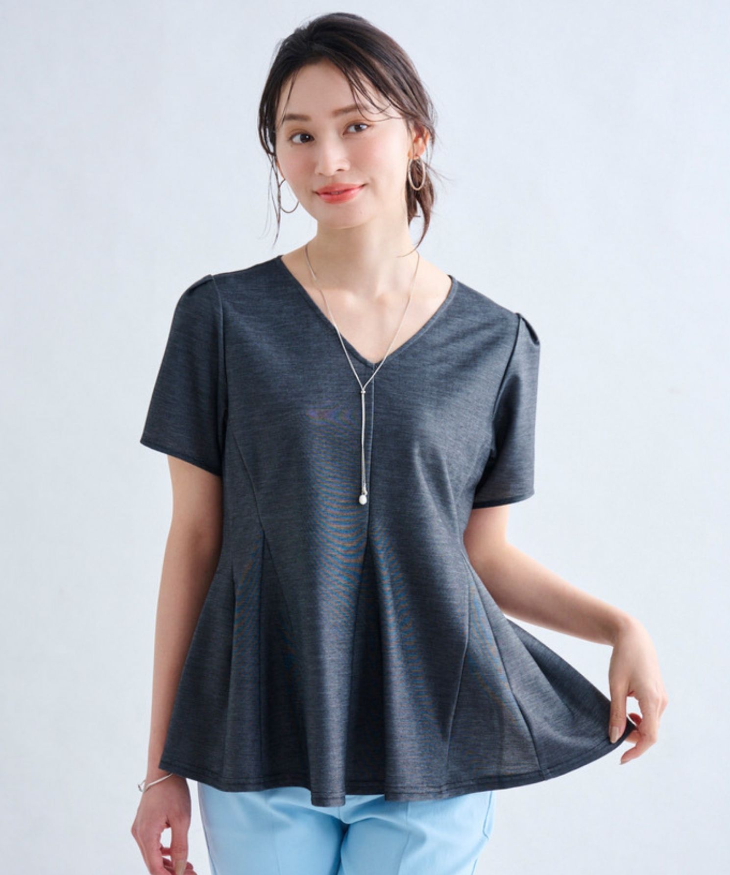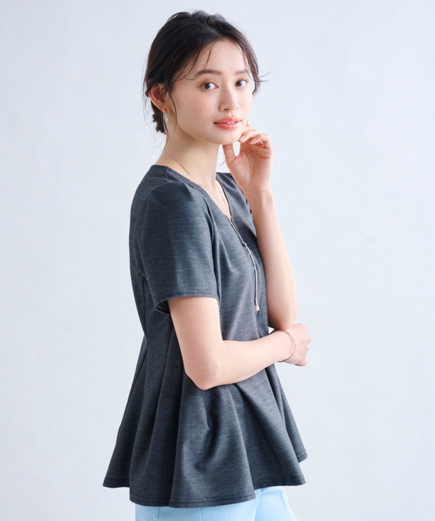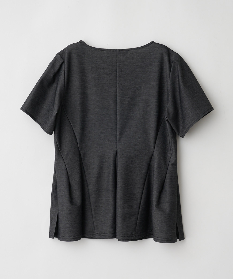 ・布帛見えするカットソー素材です。上品な光沢とメランジ感が特長で、着心地も楽ちんな素材です。