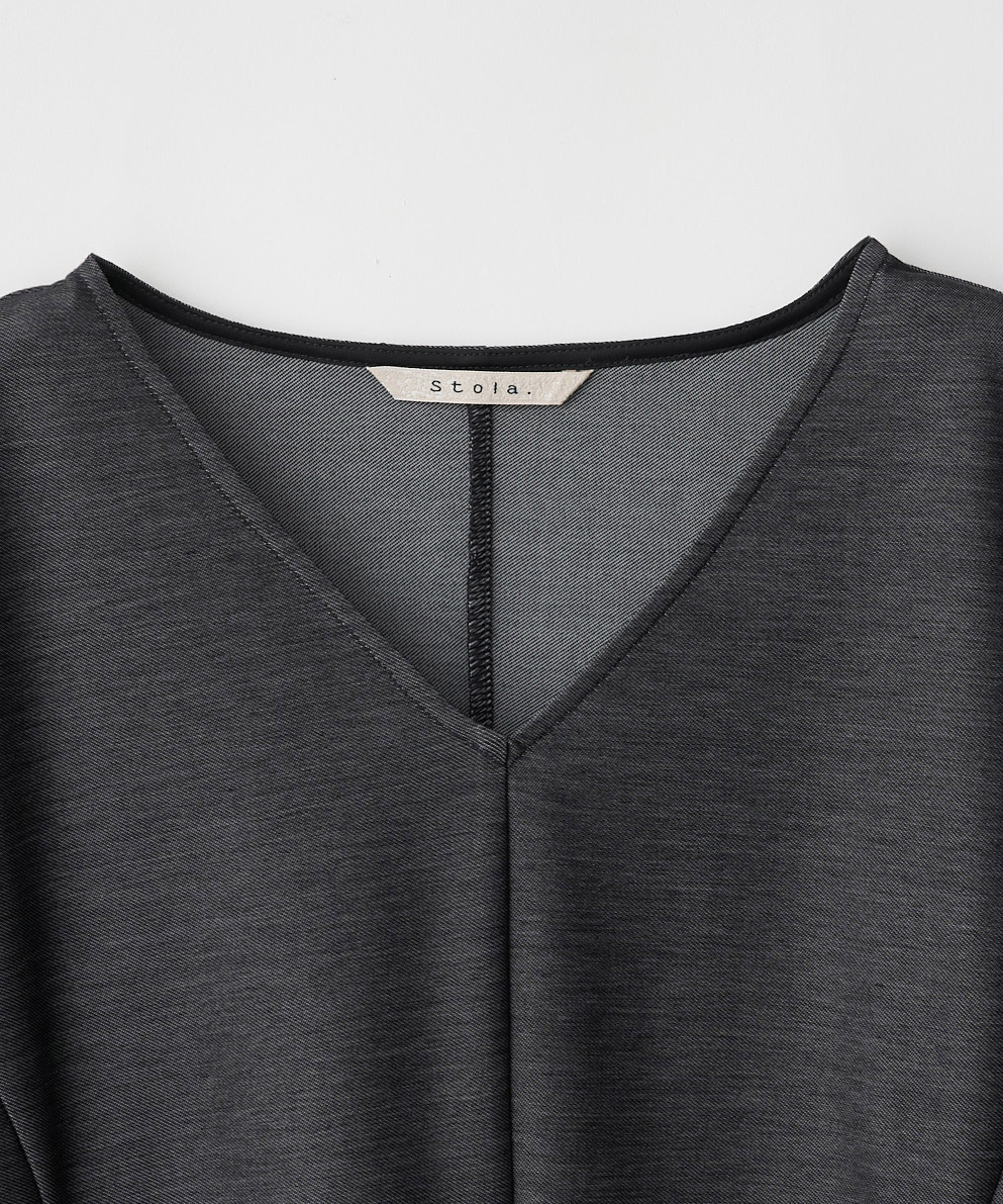 ・1枚でも着やすい適度な深さのVネックで、フェミニンなアイテムにシャープな印象をプラス。