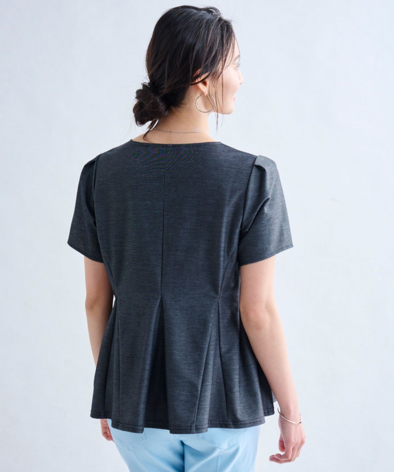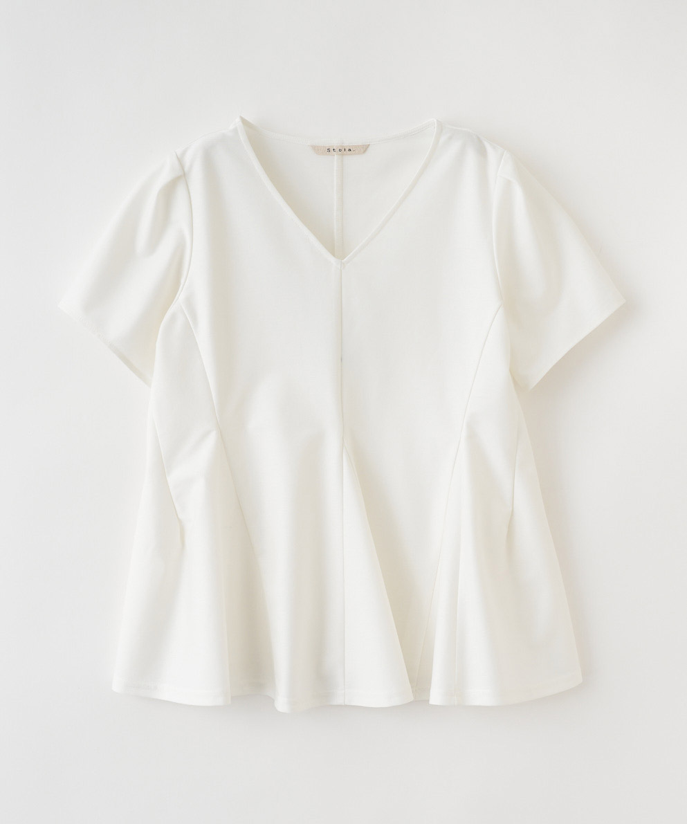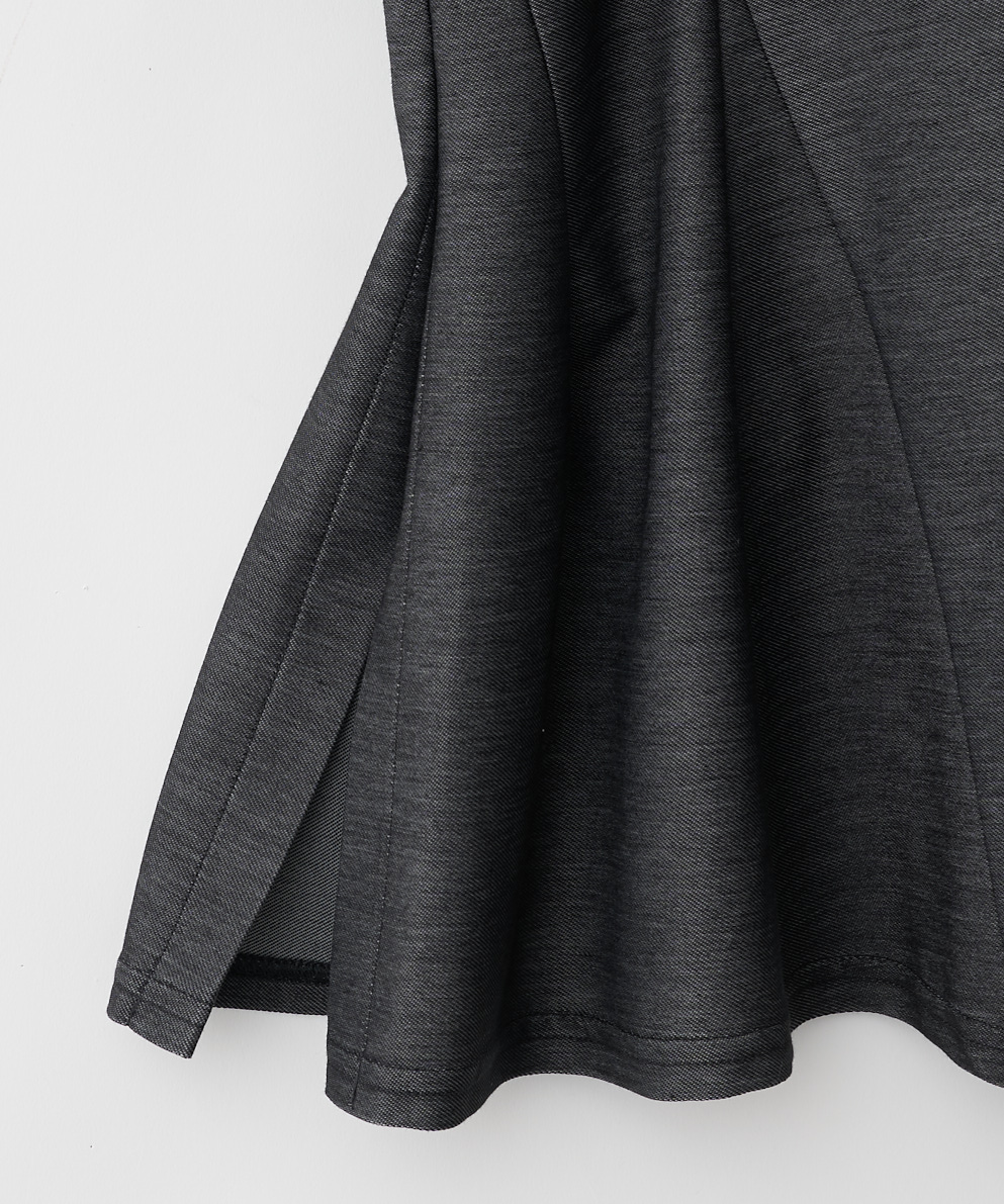 ・ウエストから広がるペプラムシルエットが華やかな1枚。裾にはマチを入れてボリュームを出し、腰あたりにはタックで女性らしい丸みを演出しました。