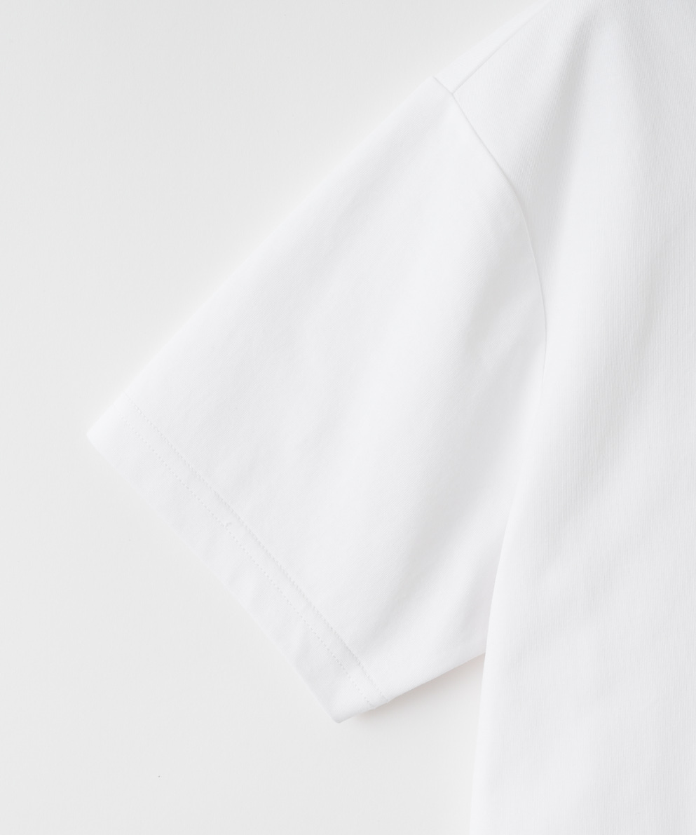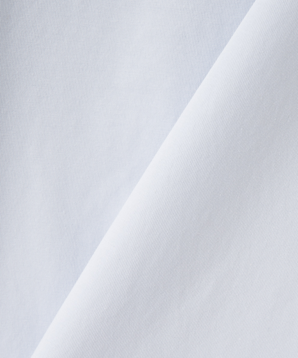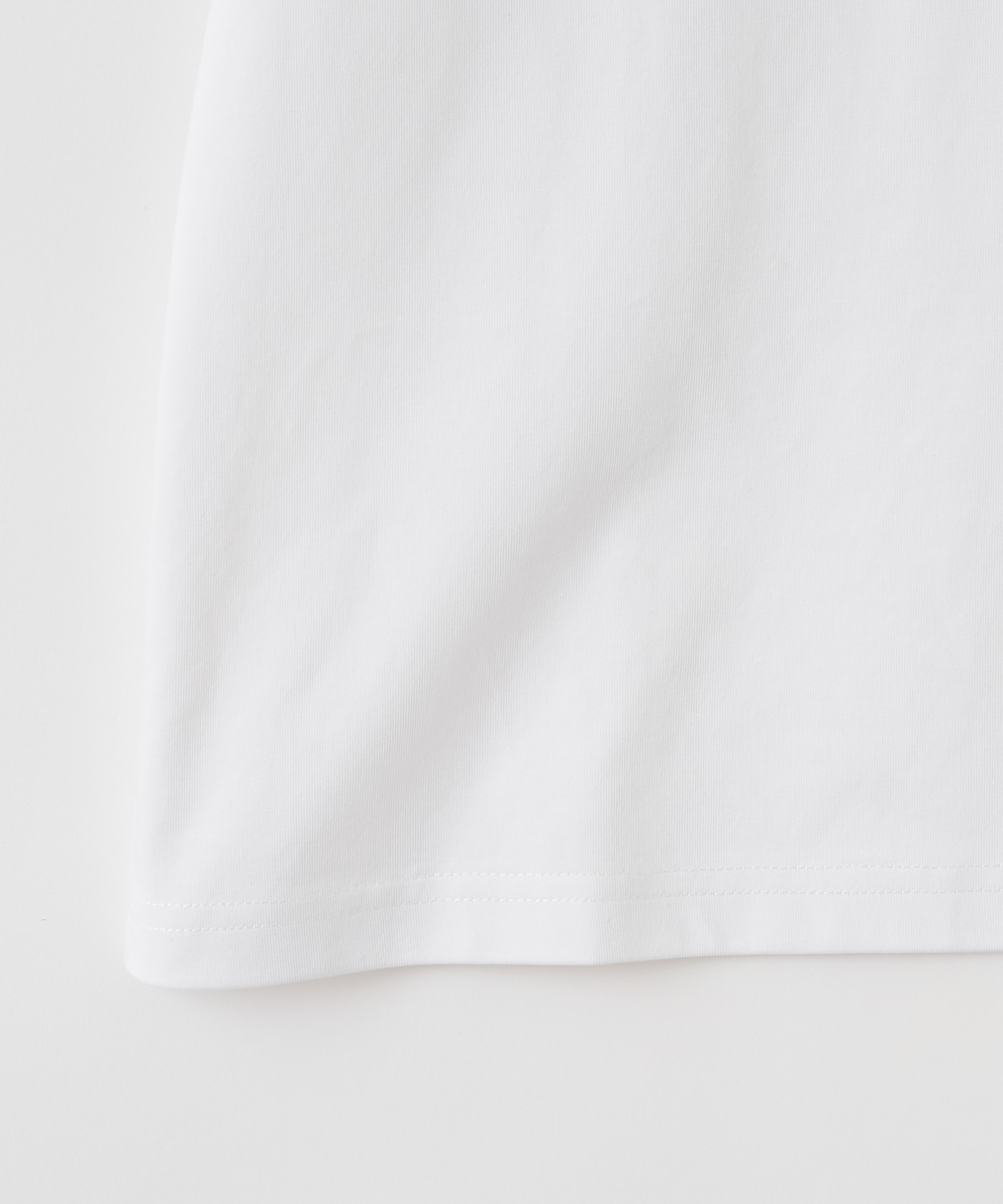 ・コットンと機能性のあるポリエステルをブレンドした天竺素材で、遮熱・吸水速乾・接触冷感・UVカットの機能を持った、マルチファンクション素材です。暑い時期に快適な着心地です。