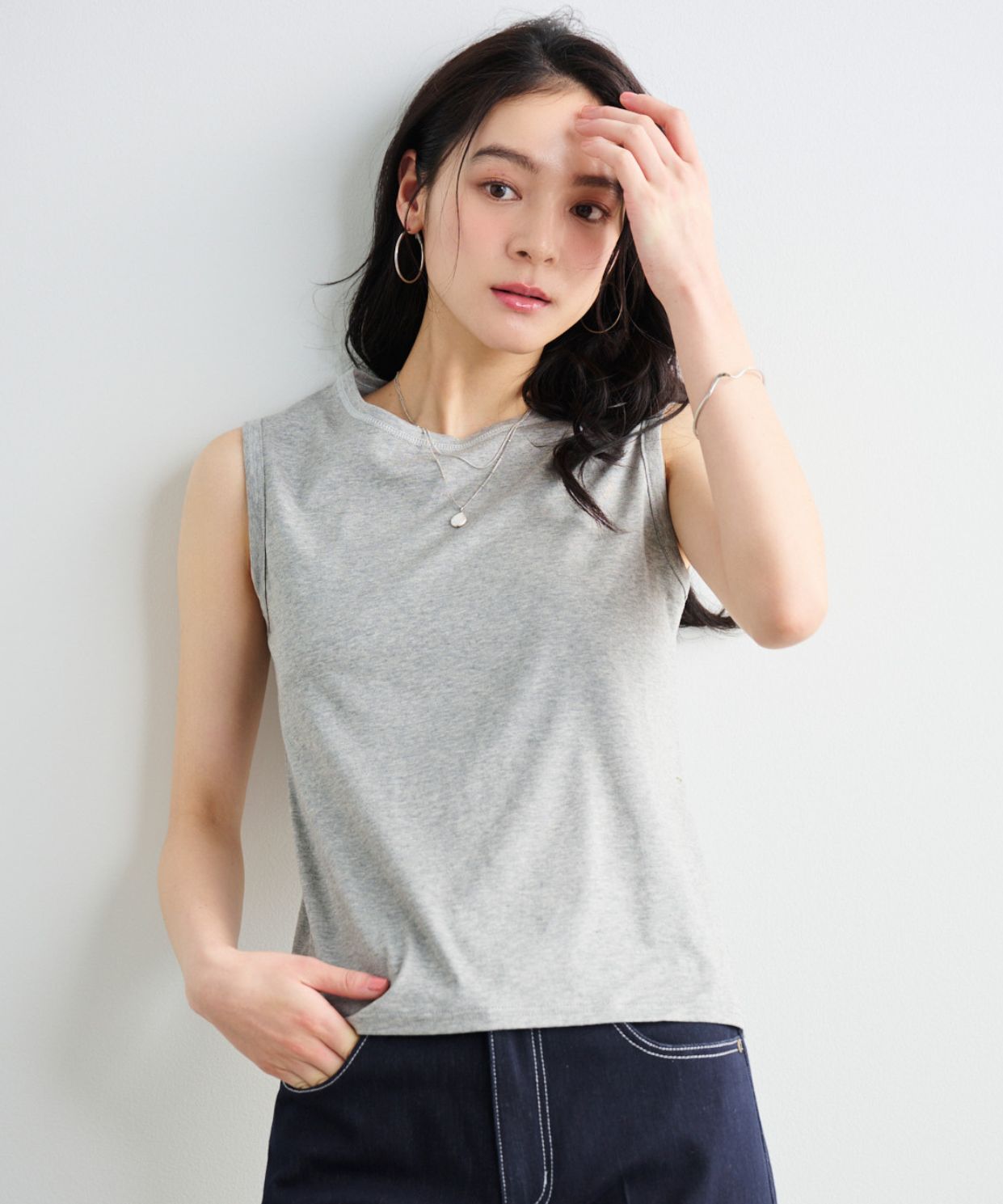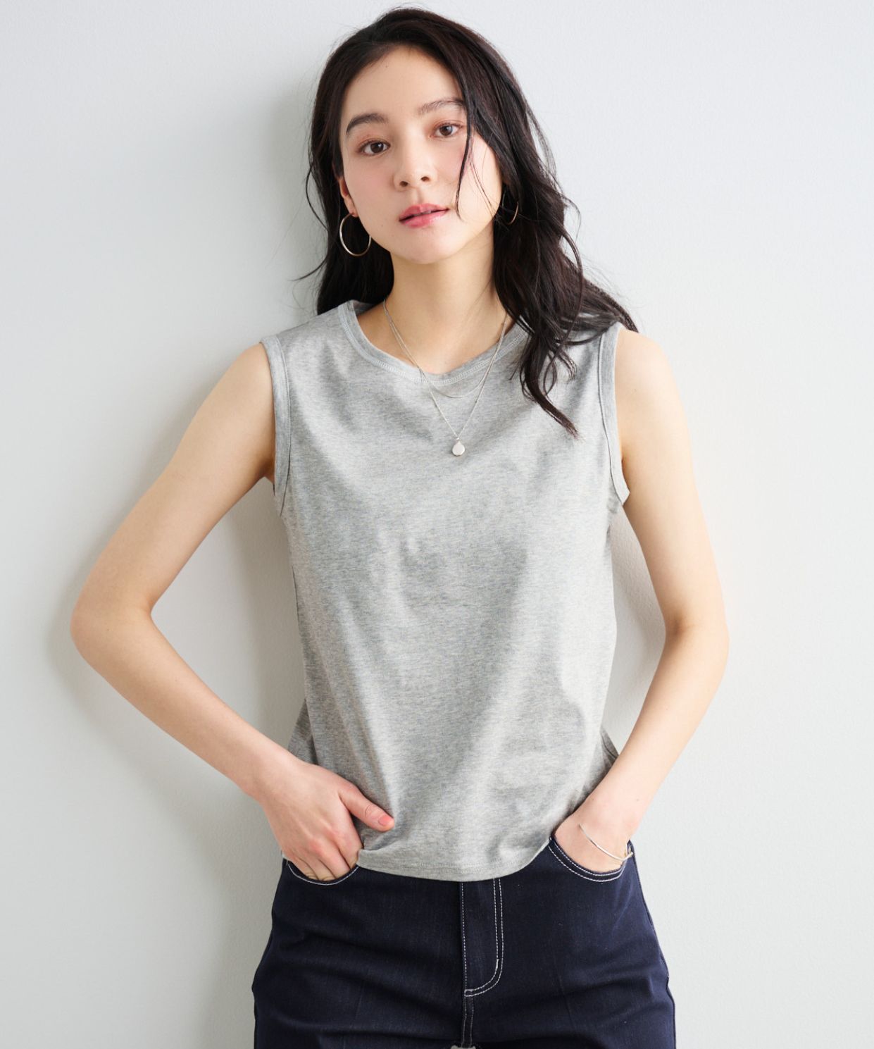 - 【汗ジミ防止・接触冷感】ノースリーブタンクトップ