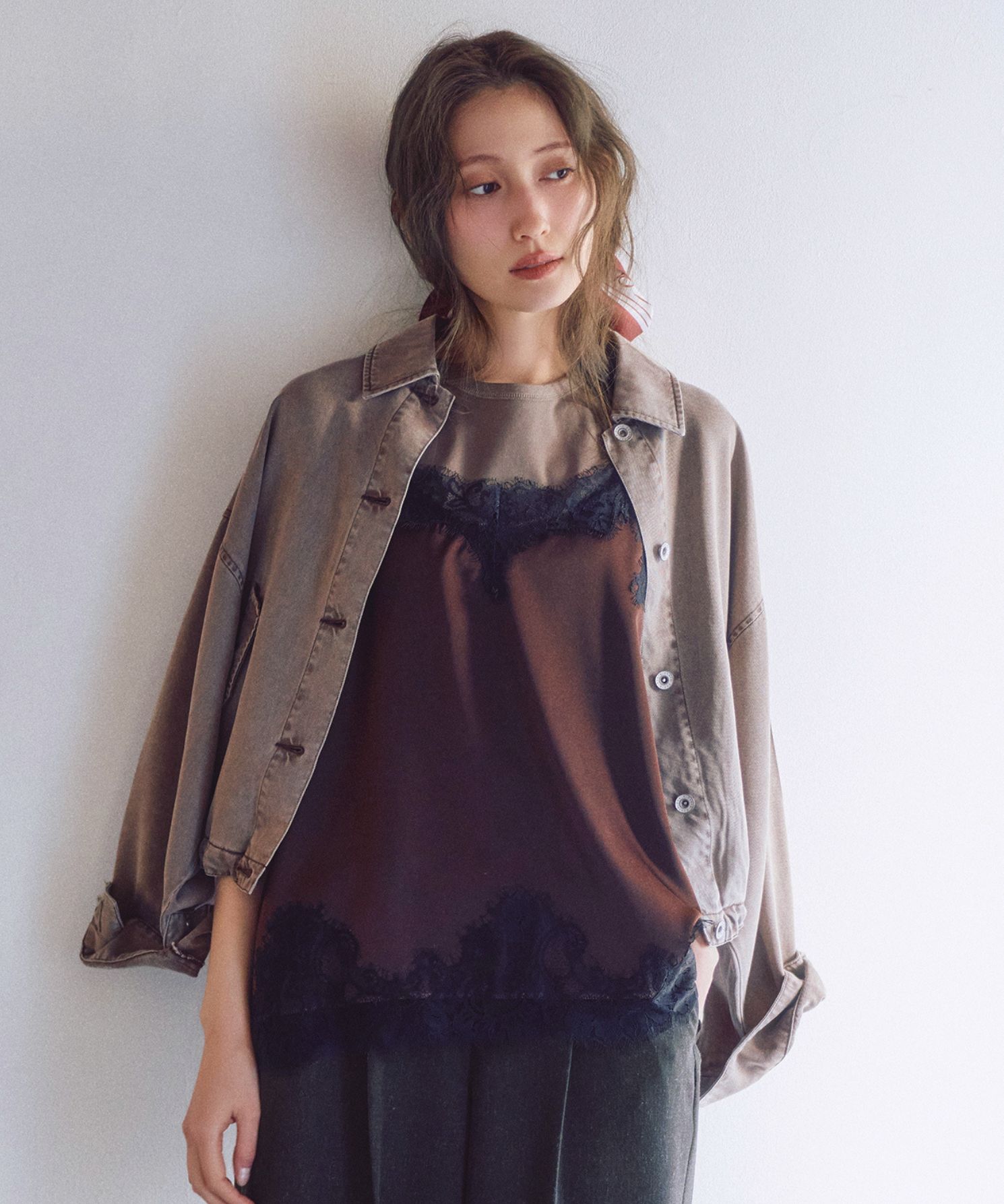 ・程良いゆとりがあり、1枚でも着られるサイズ感に仕上げています。