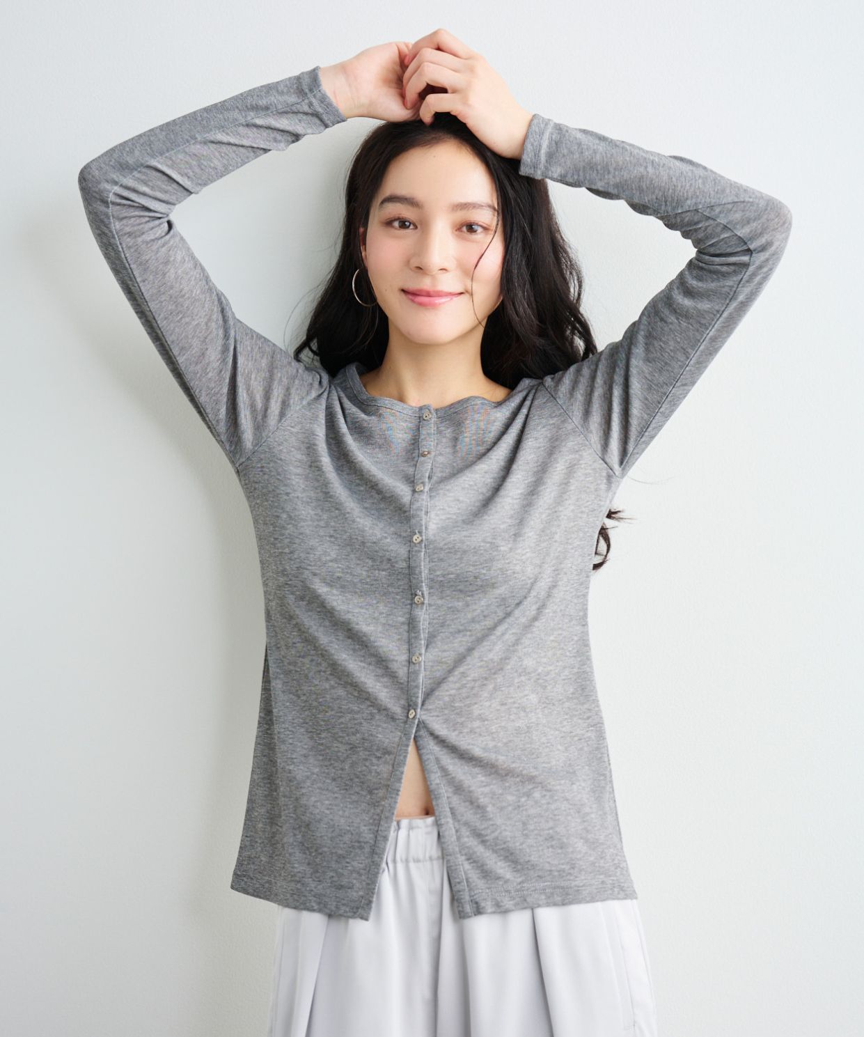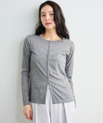 ・ボタンを全て留めればプルオーバーとして、ボタンを開ければカーディガンとして、その日の気温や気分に合わせて楽しめます。前後2WAYなのも嬉しいポイントです。