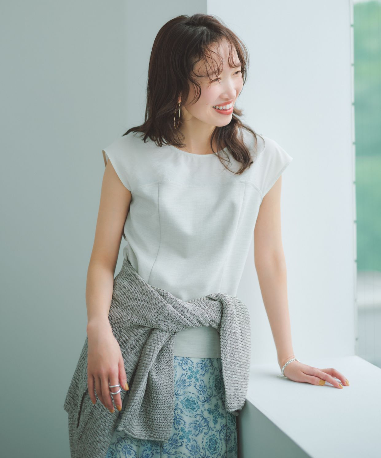 【素材感】:シャリ感のある素材で、軽やかな着心地です。