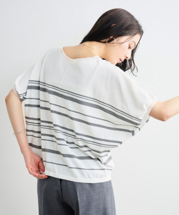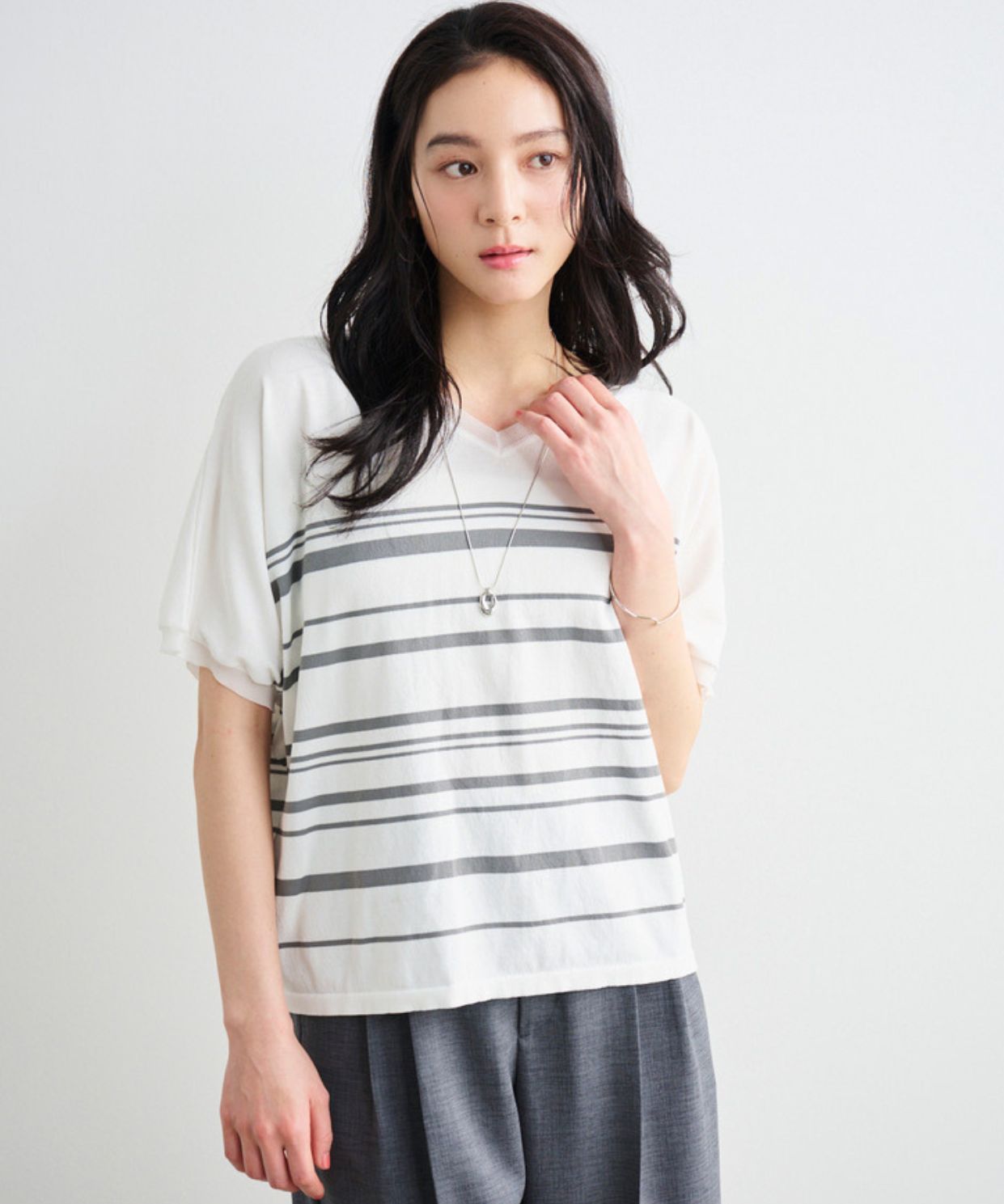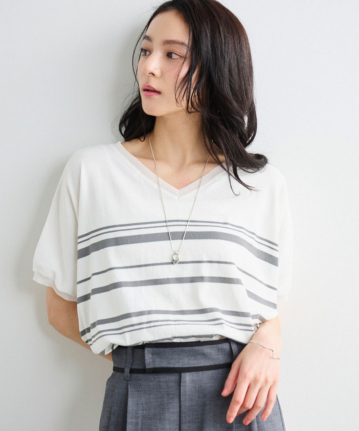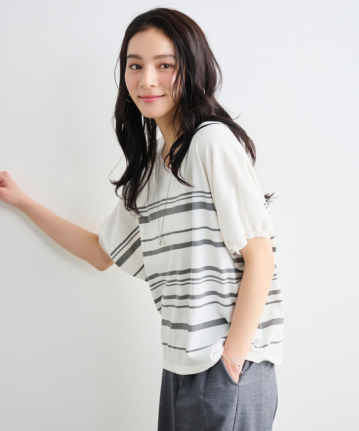 ・衿ぐりと袖口にはシアー糸を使用し、さりげない抜け感をプラスしています。
