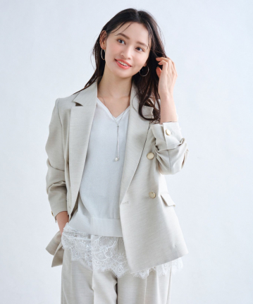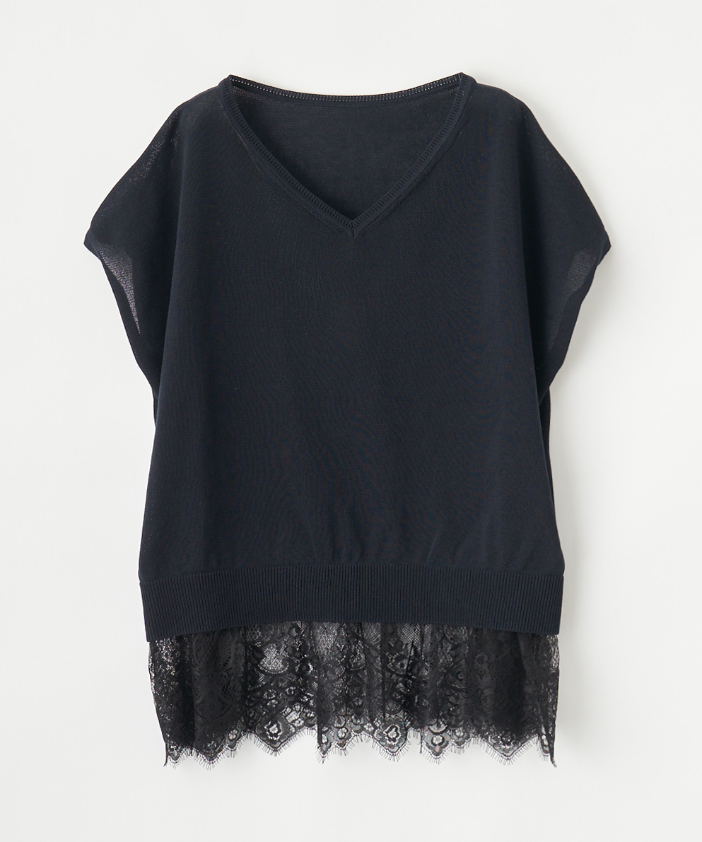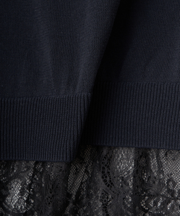 ・ニットとレースが一体となっているため、悩まずに着るだけでトレンドのレイヤードスタイルが完成します。
