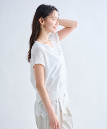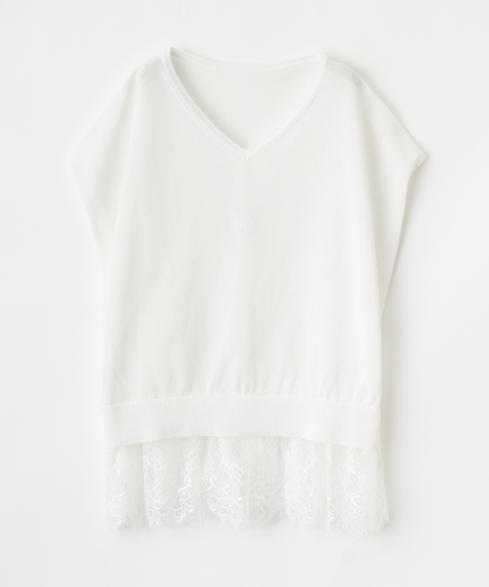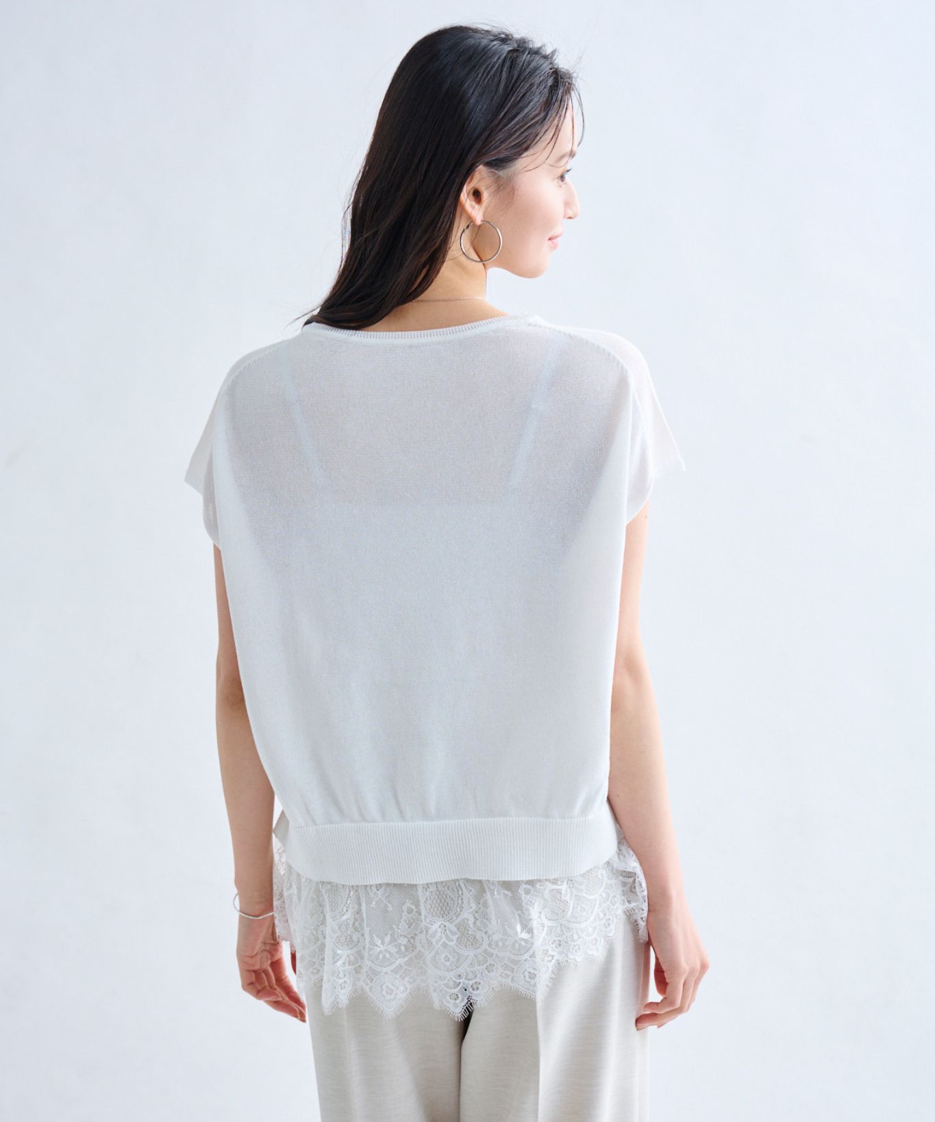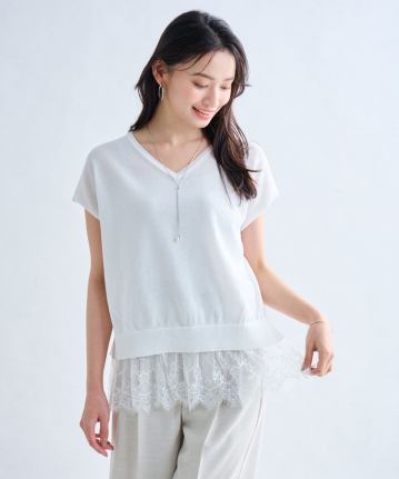 ・裾にあしらわれた繊細なスカラップレースが、カジュアルなニットスタイルを品良く格上げしてくれるプルオーバーです。