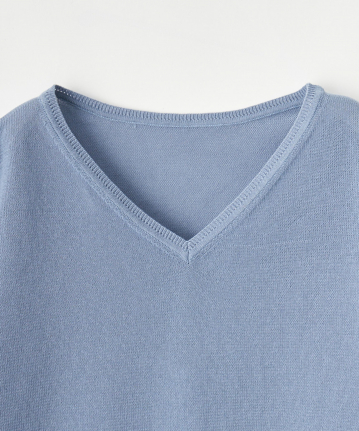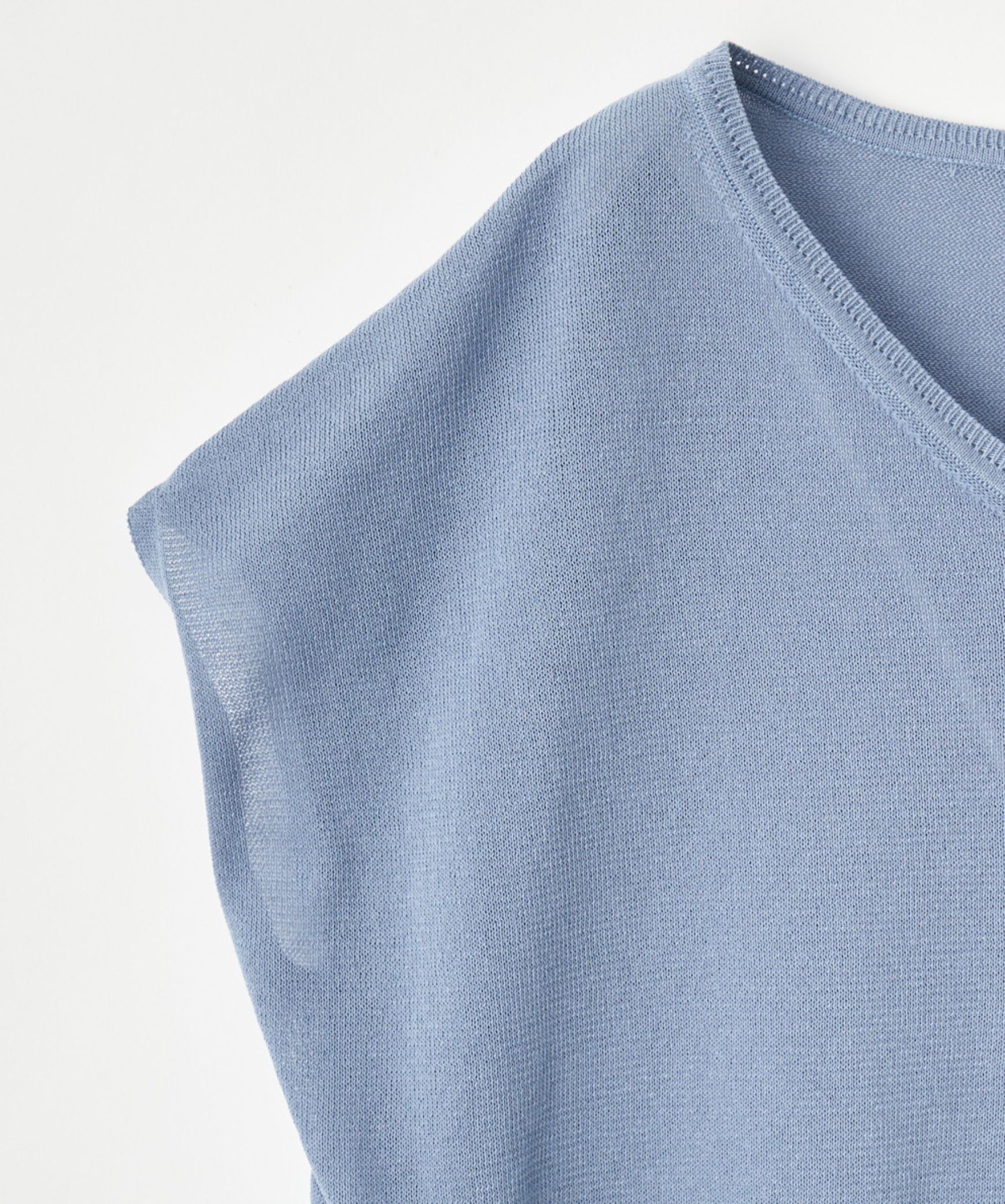 ・顔周りをすっきりとシャープに見せるVネックデザインに、程良くゆとりのあるフレンチスリーブのシルエットが二の腕をさりげなくカバーしつつ、女性らしい抜け感を出しています。