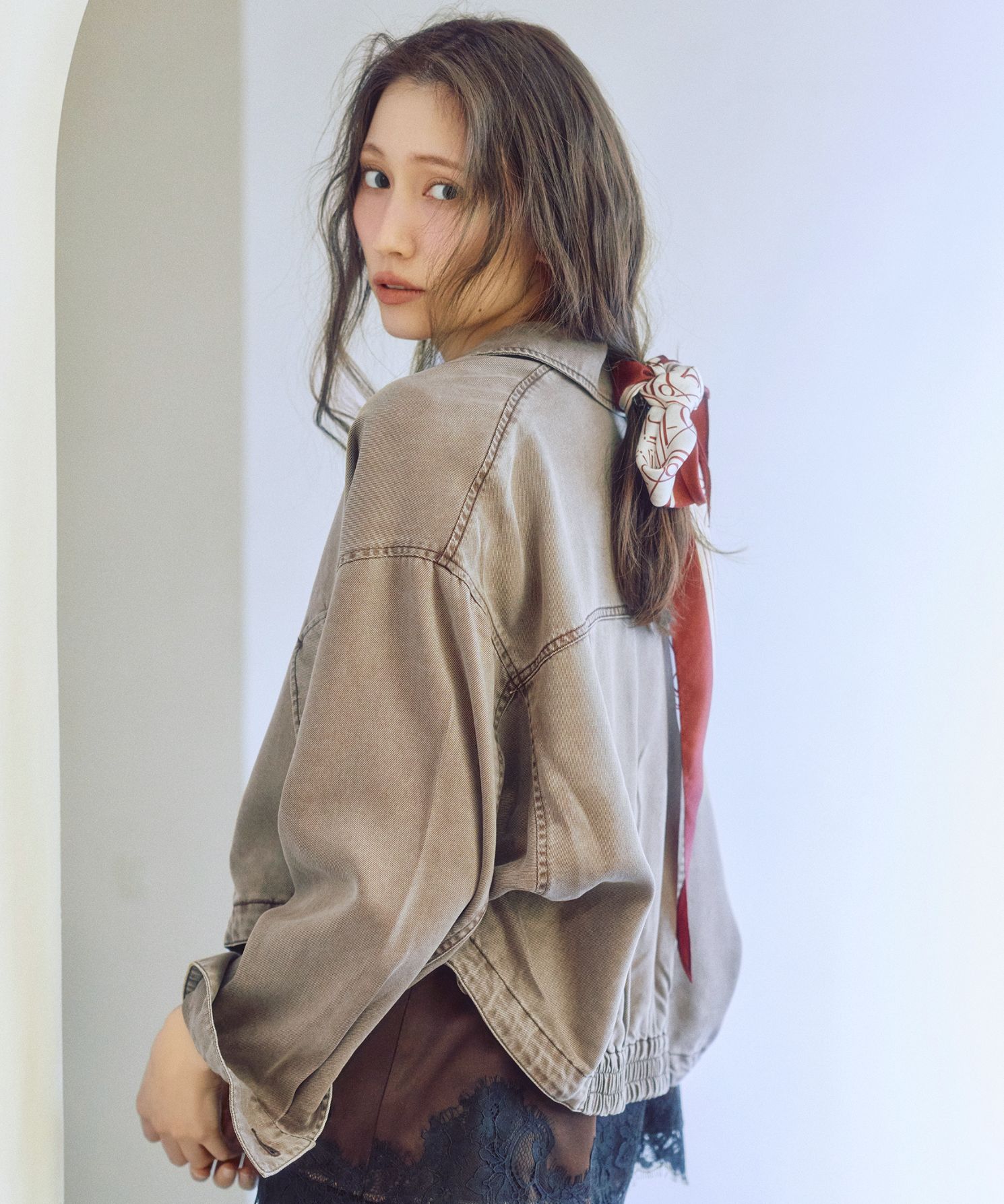・ダイヤ型にすることで手軽に首元やヘアアレンジ、バッグに巻いたり腰巻きが出来ます。