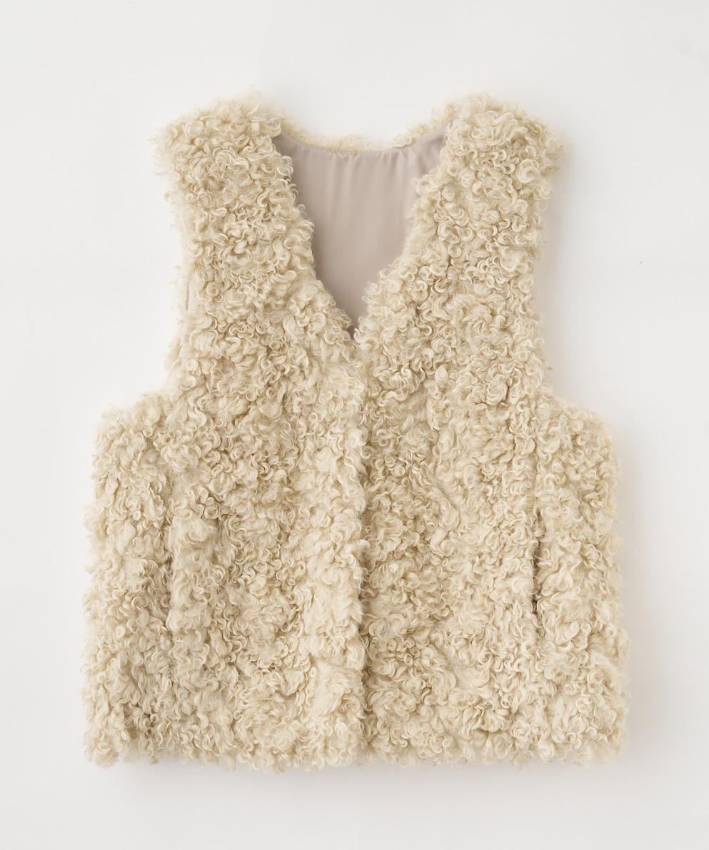 【EC限定】ノーカラーリバーシブルフェイクムートンコート