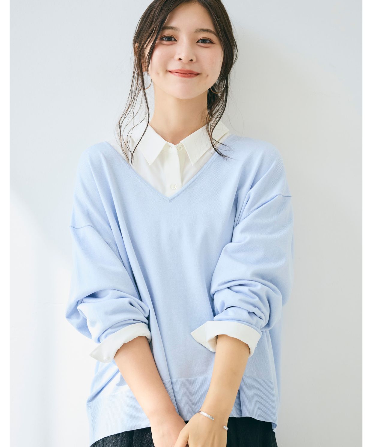 【7色】シルク混ハイゲージVネックニットプルオーバー
