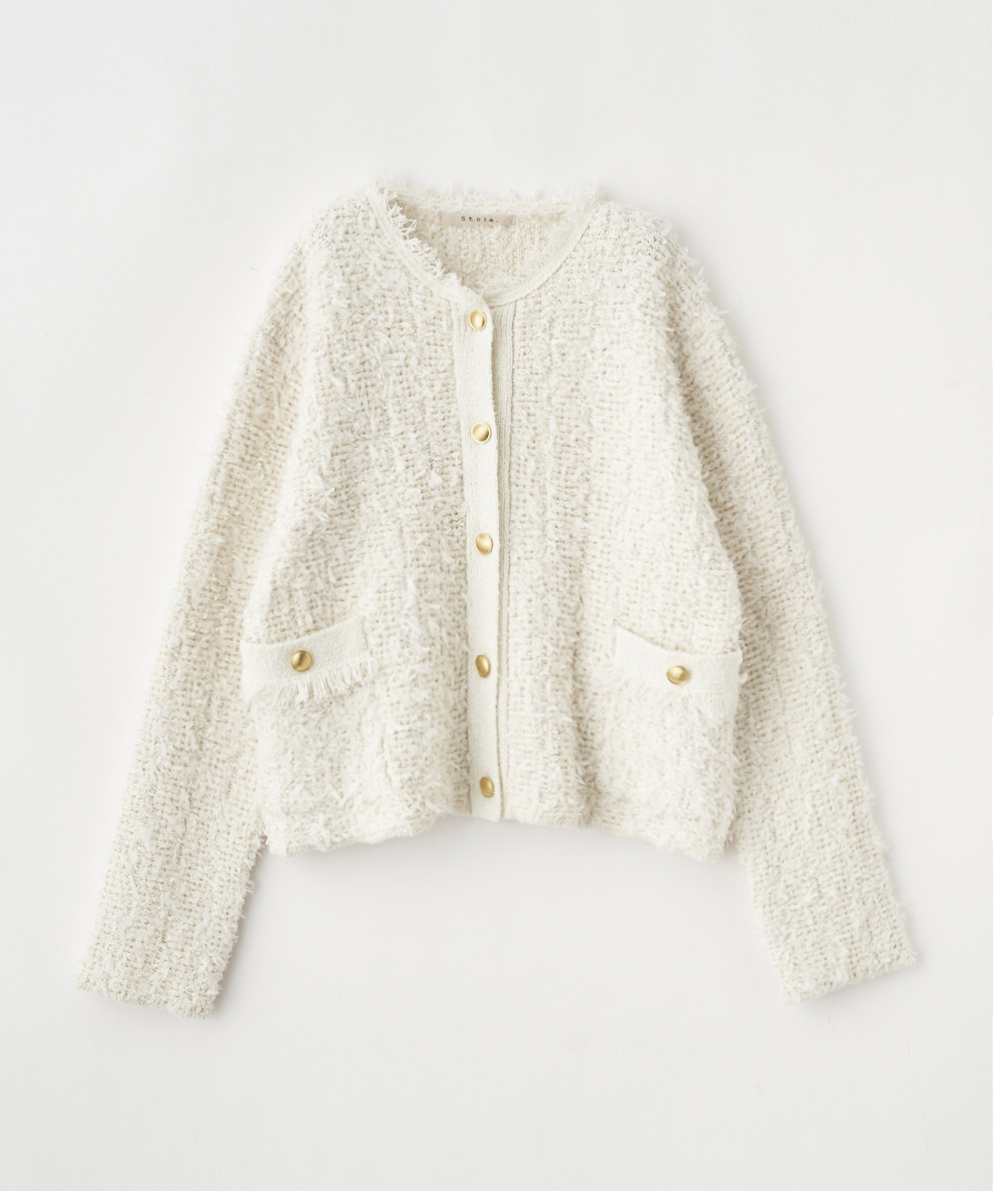 配色リブ半袖ニットカーディガン(オンライン限定カラー有り)