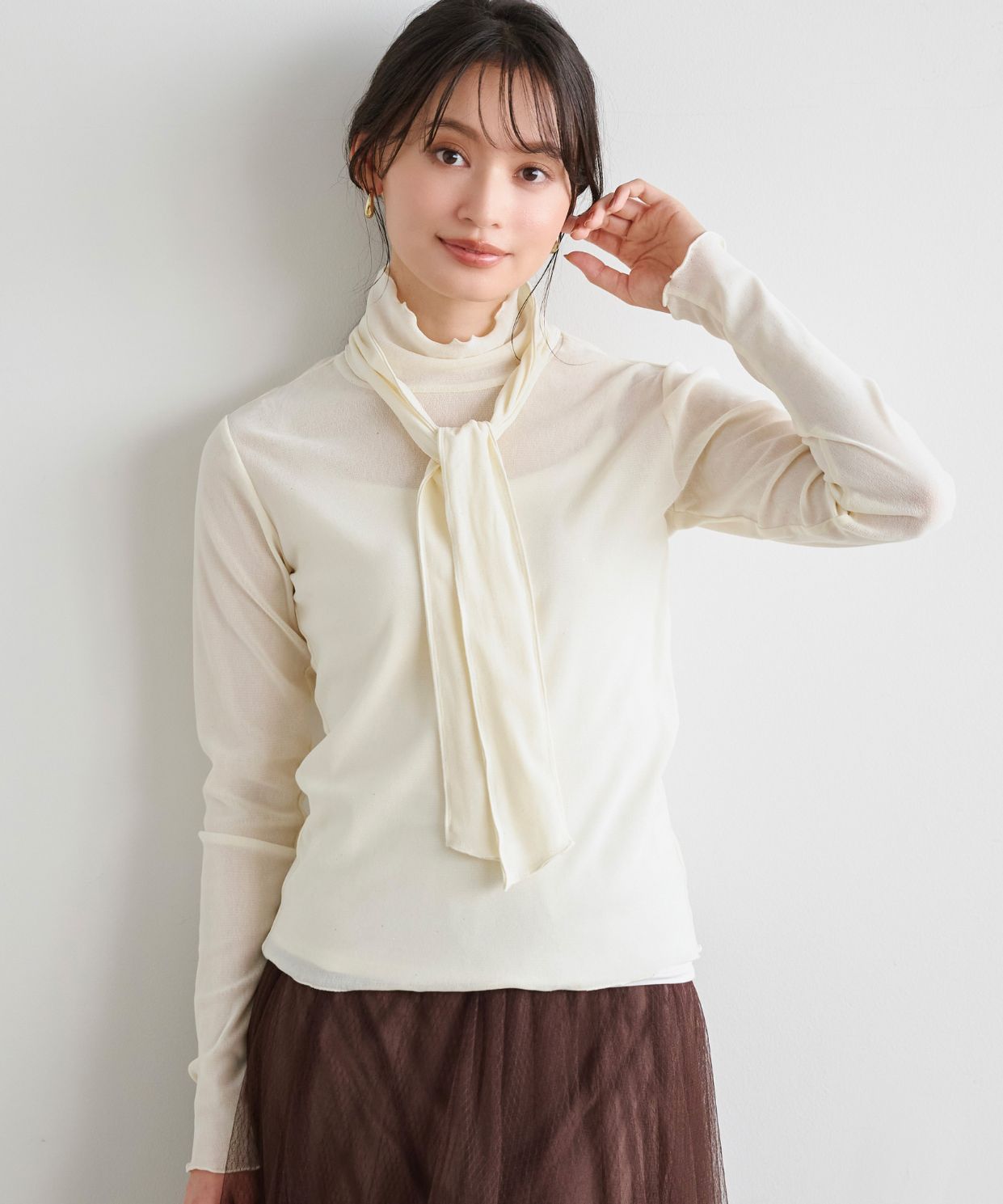 ボウタイ付きスタンドカラーブラウス
