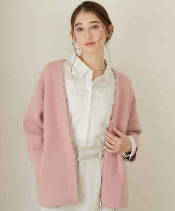 短丈衿付きニットカーディガン