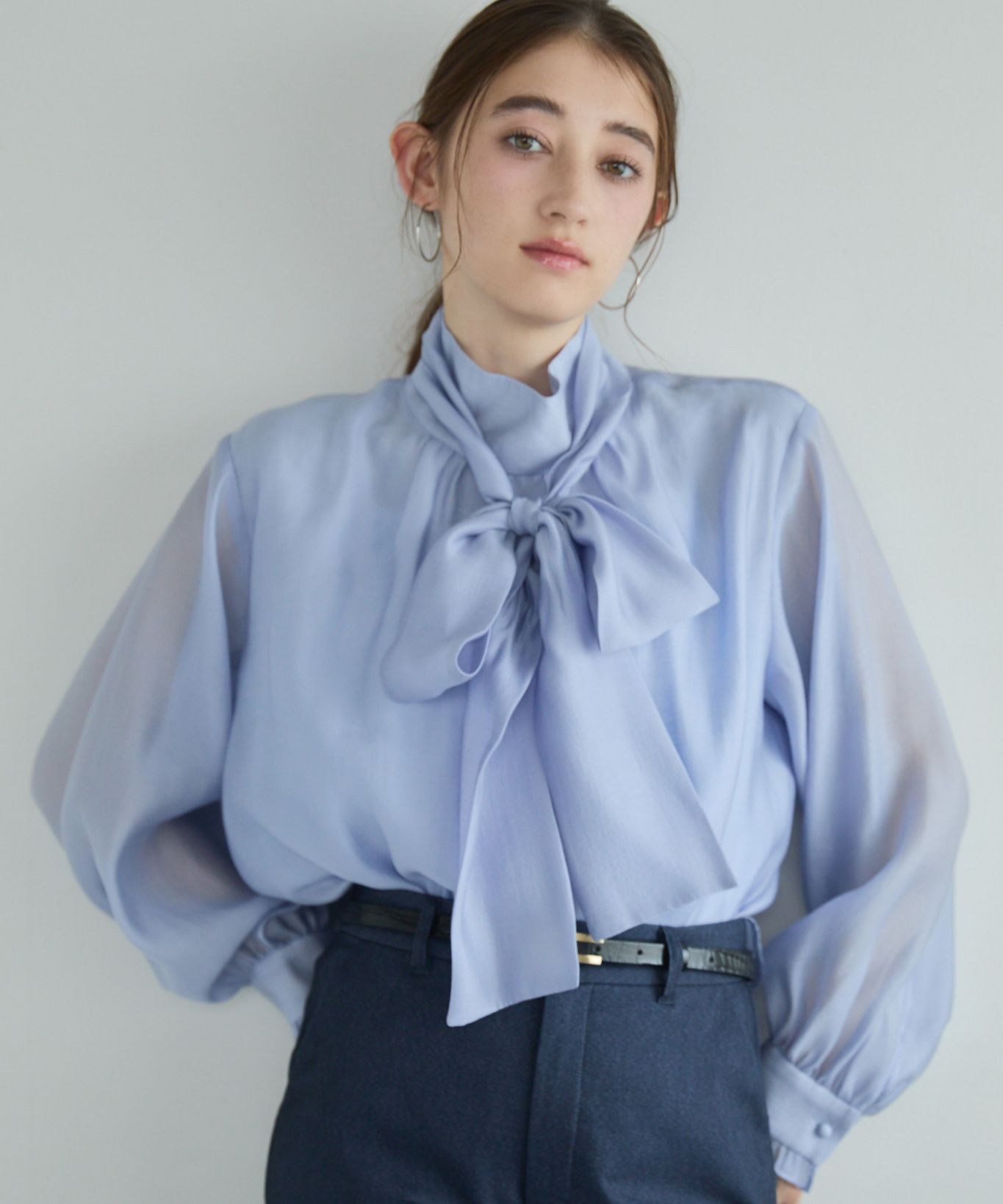 ボウタイ半袖ニットプルオーバー(オンライン限定カラー有り)