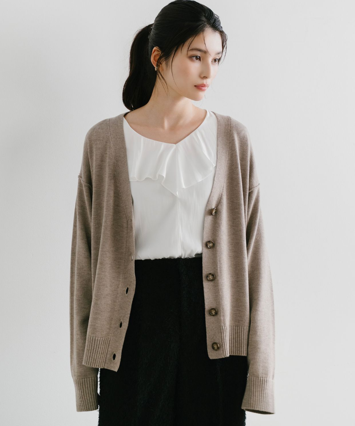 配色リブ半袖ニットカーディガン(オンライン限定カラー有り)