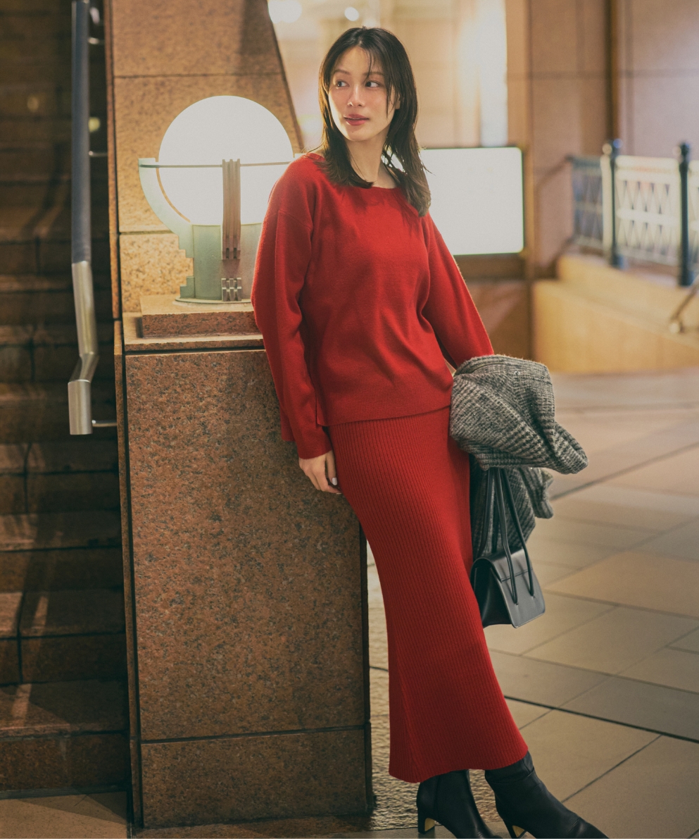 ボートネックプルオーバー+マーメイドスカートセット
