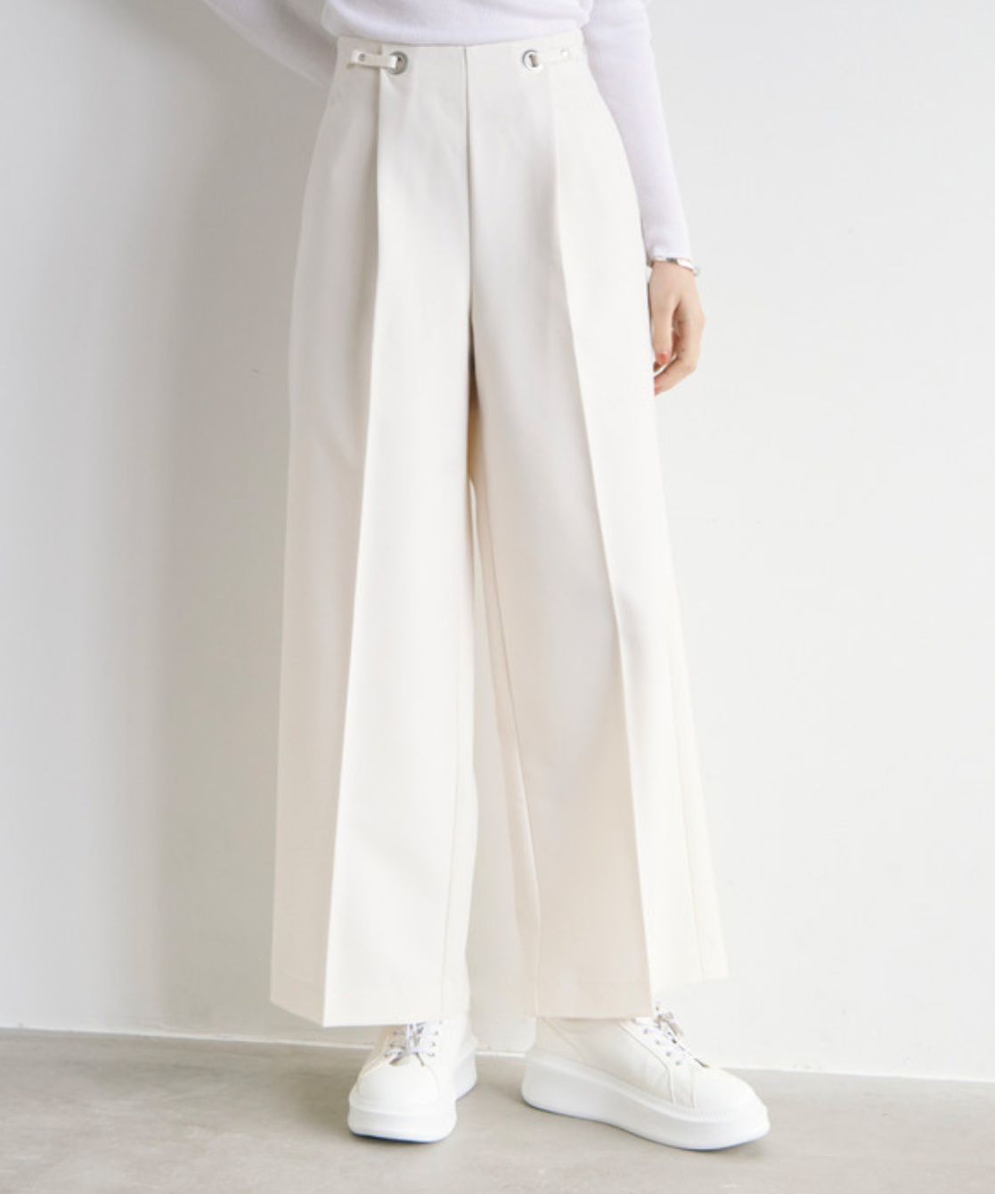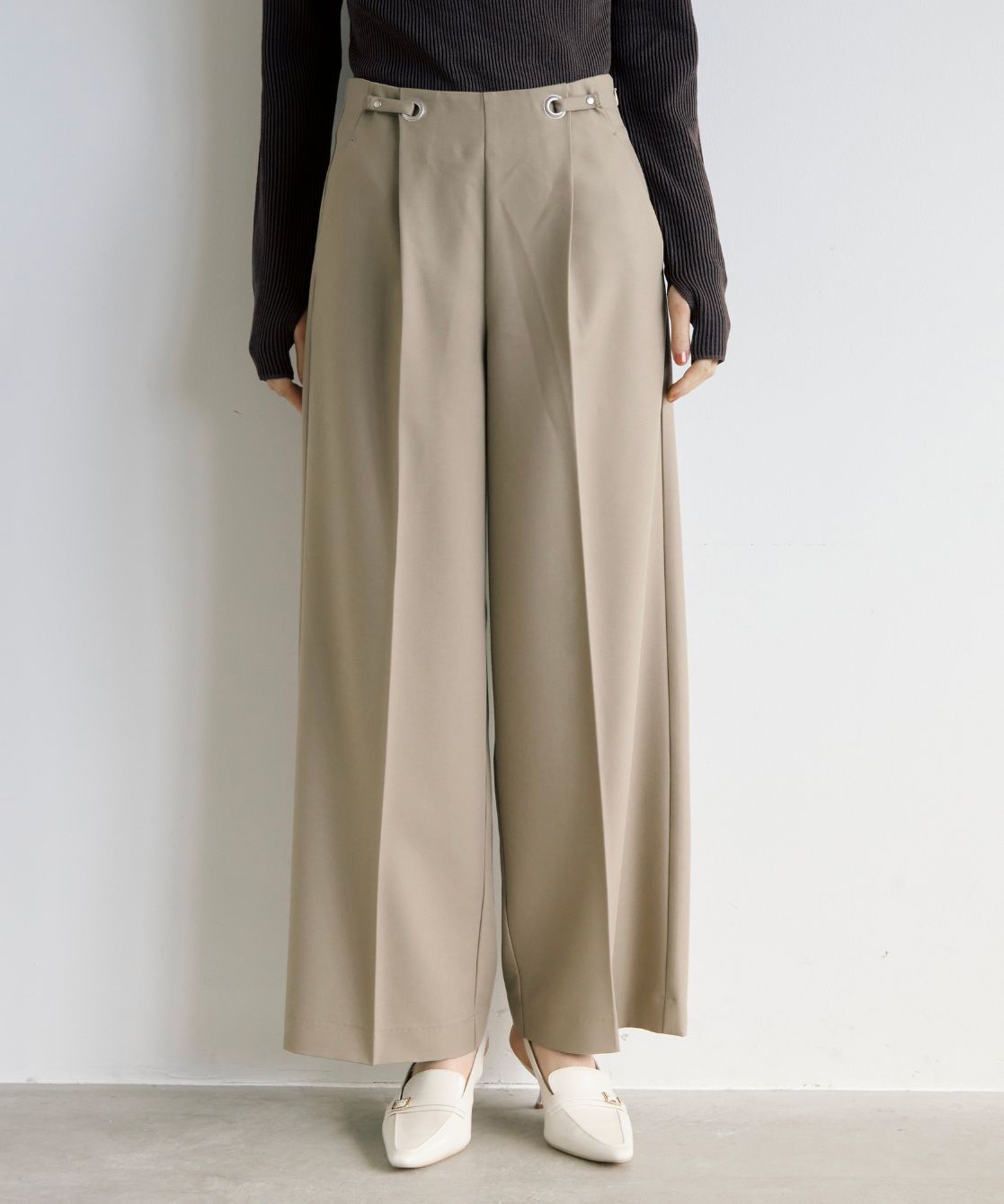 ハトメ付きワイドパンツ