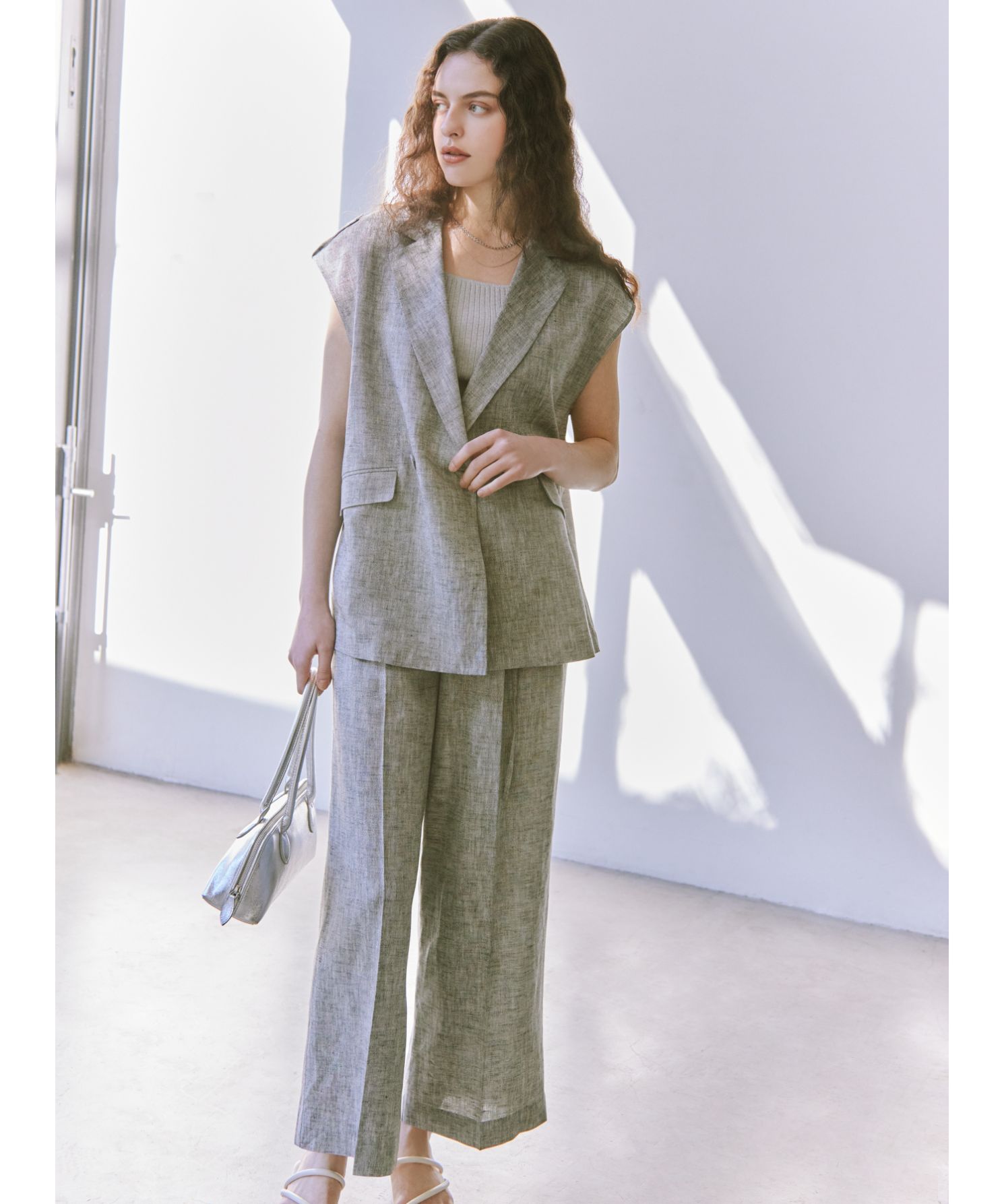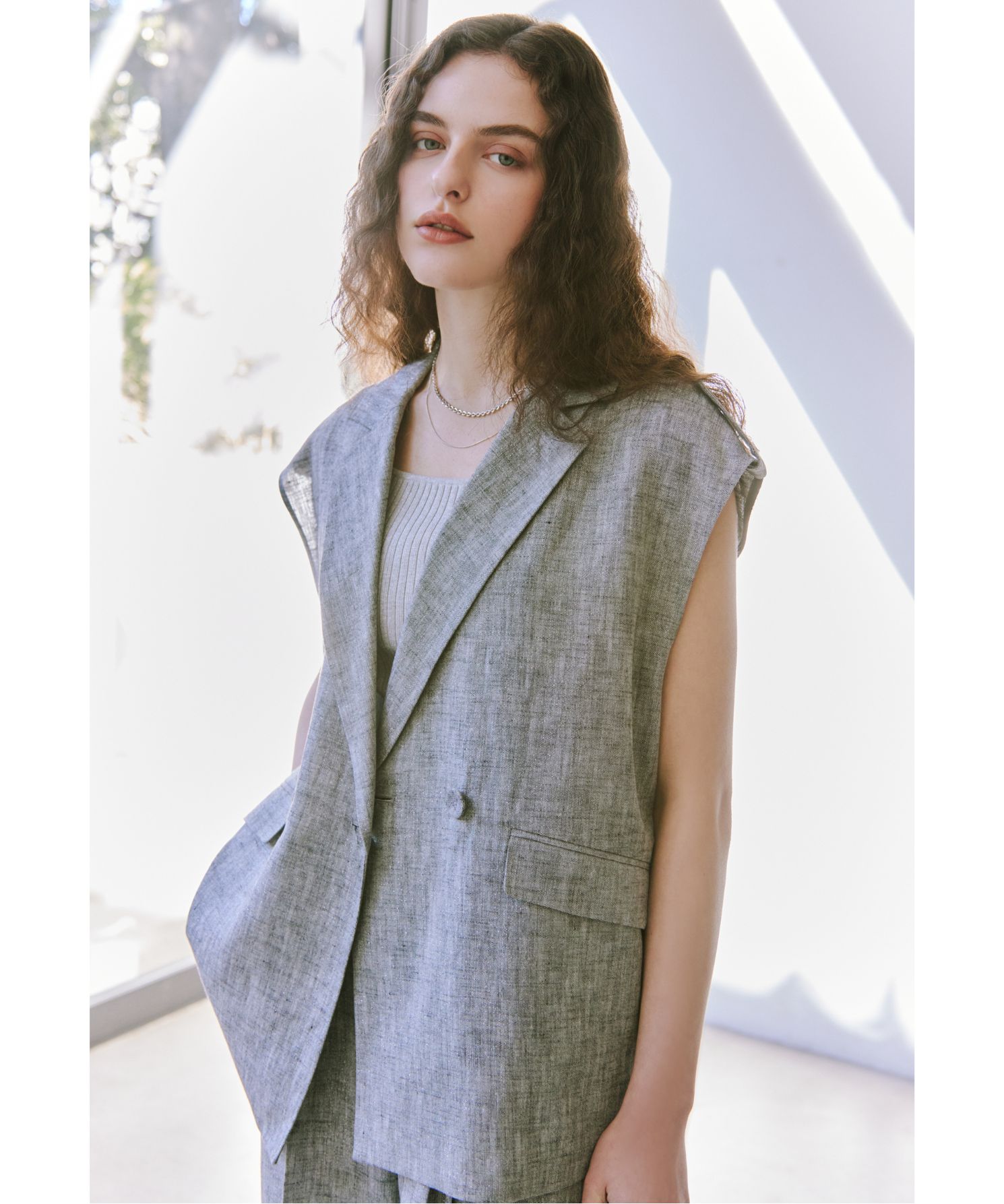 ラメ混麻テーラードジレ