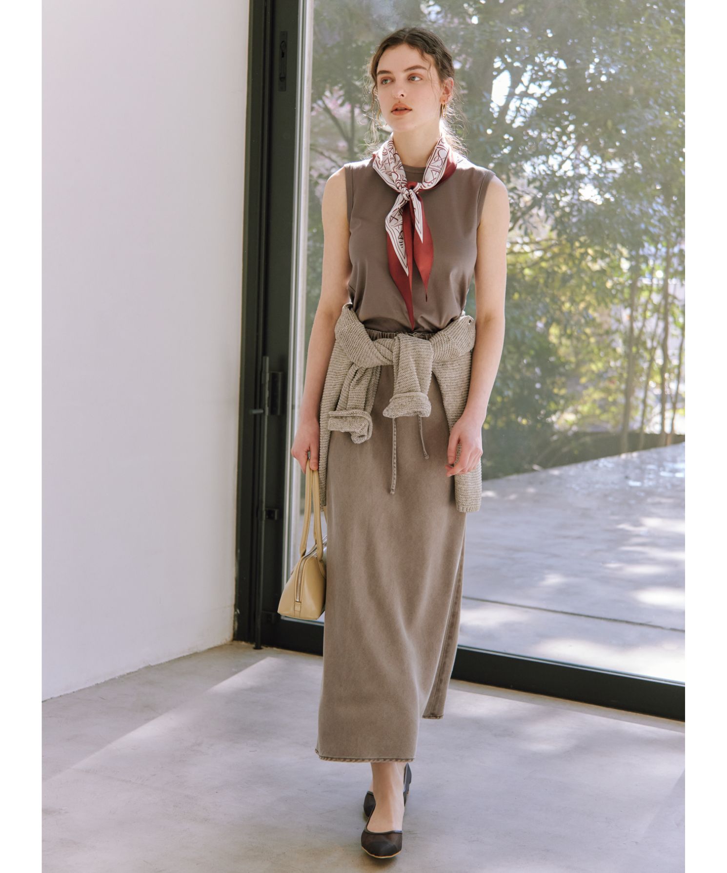 麻混素材ややワイドパンツ