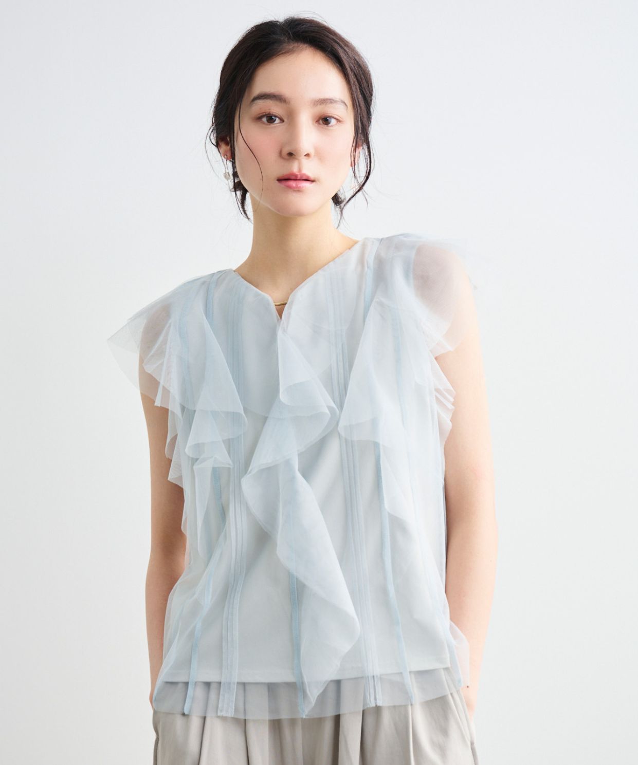 金属バー付きチュールドッキングカットソープルオーバー