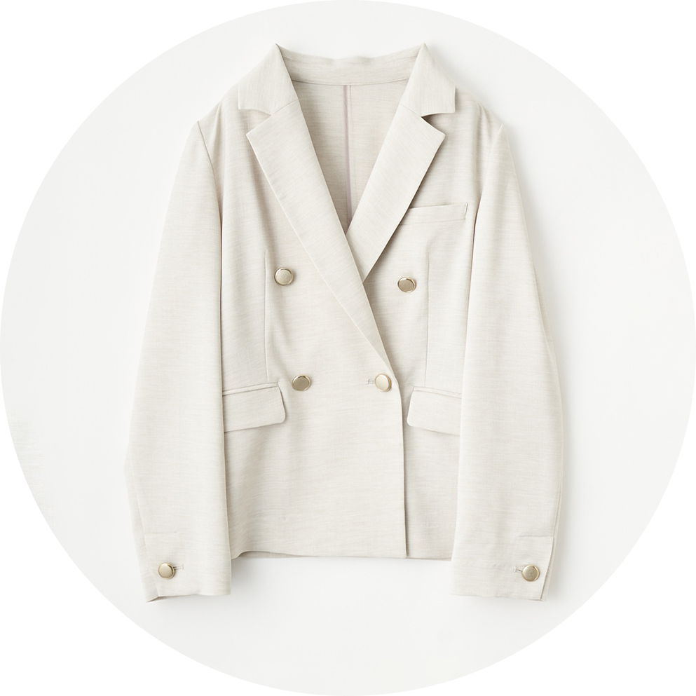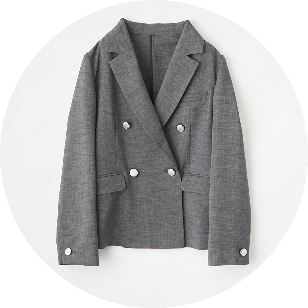 差し色をプラス。インナーのメタル釦が縦ラインを