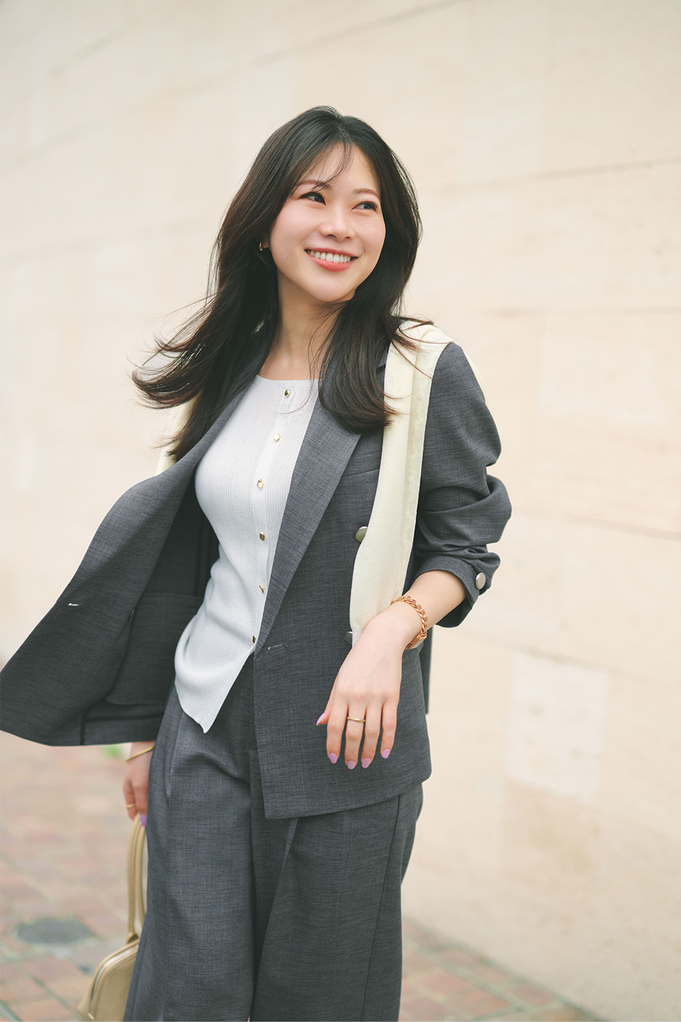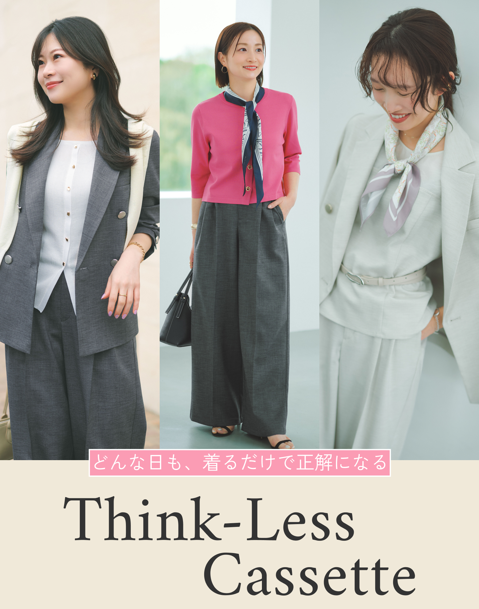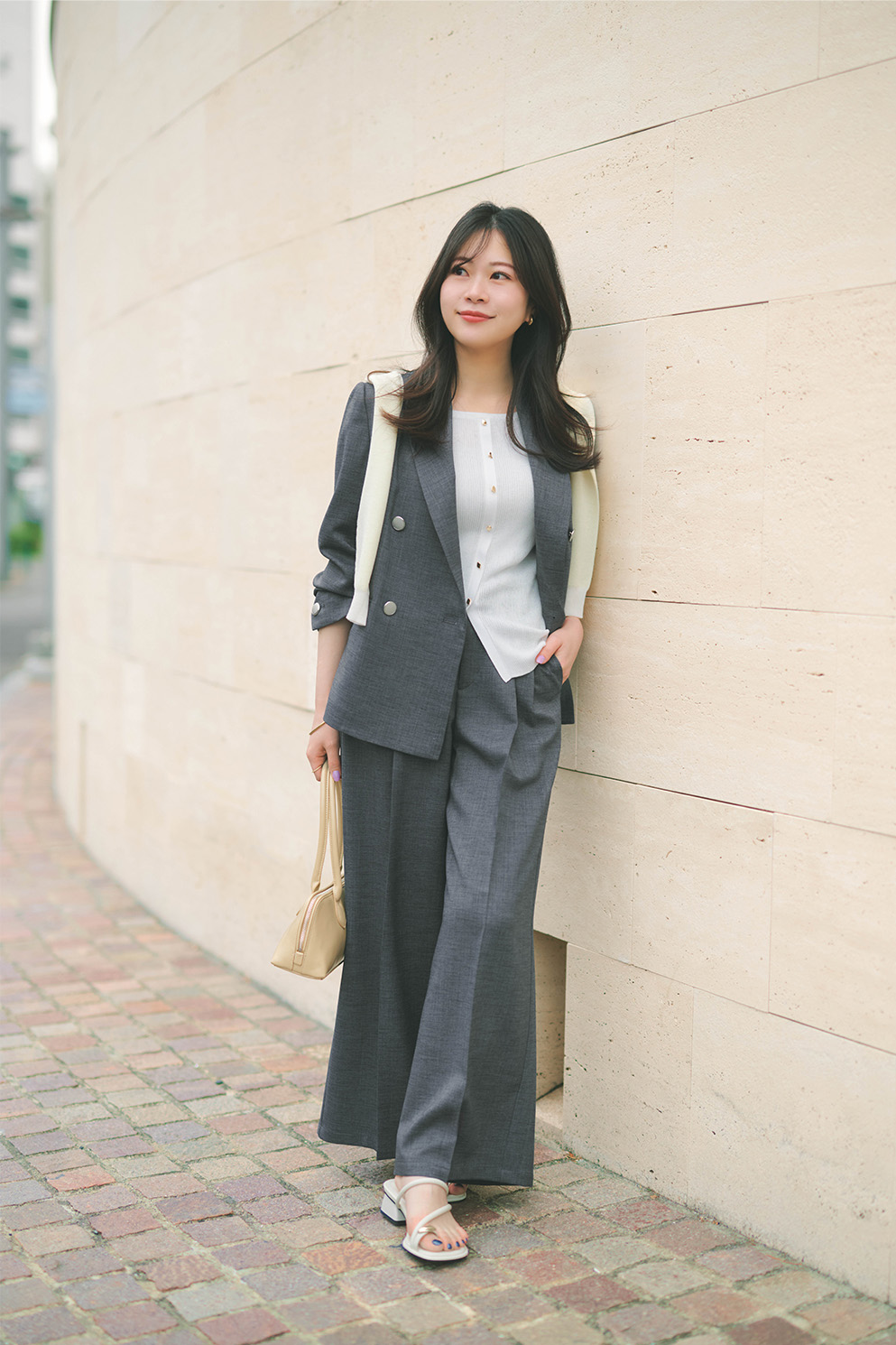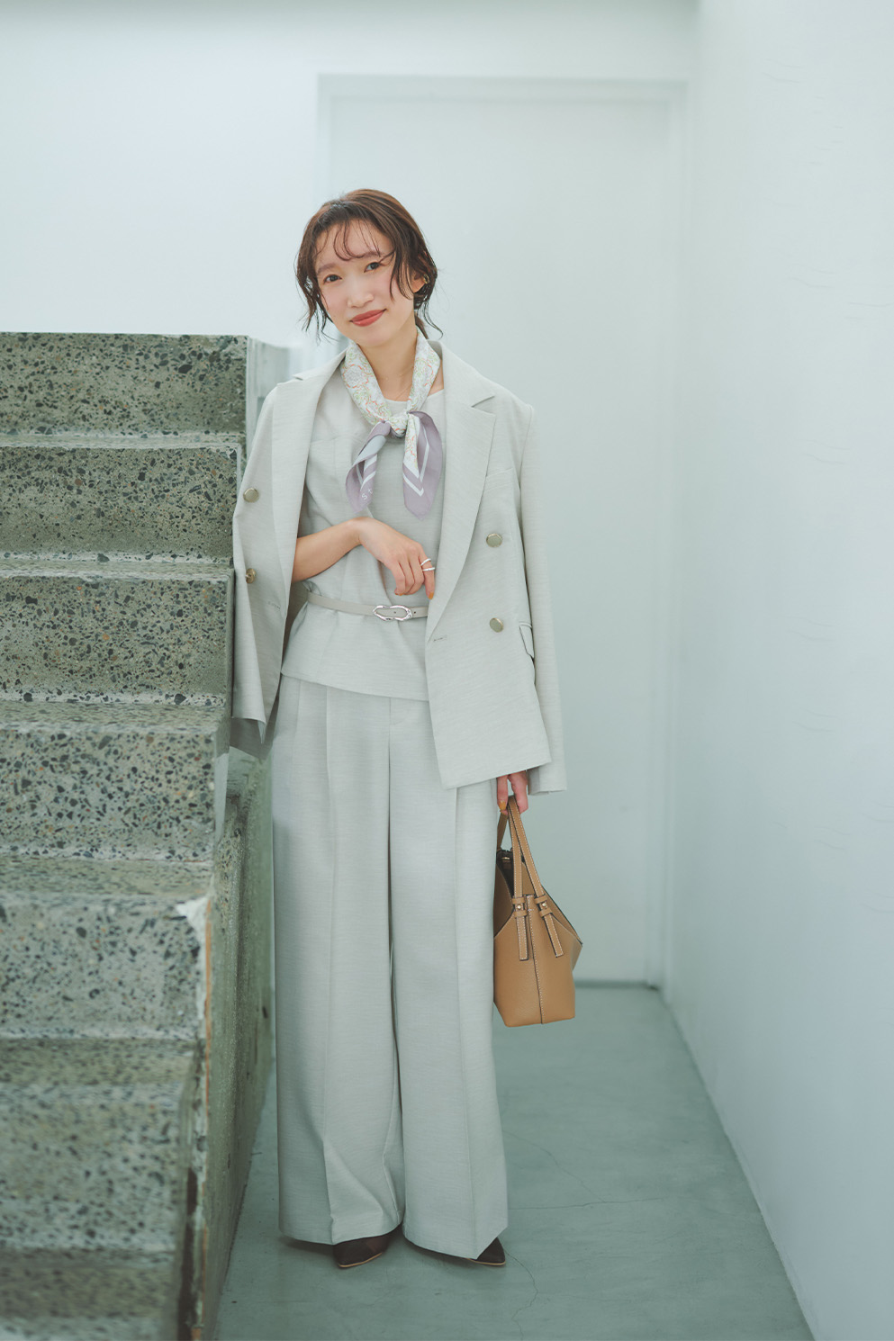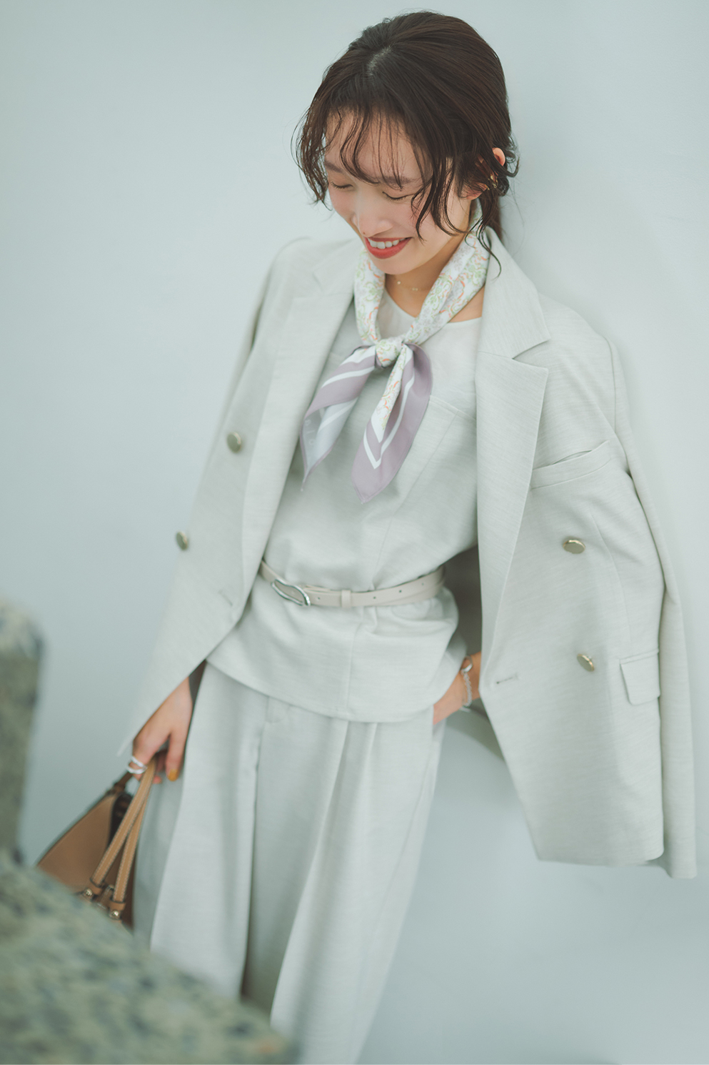 3点セットで着たスタイリングも、どこかこなれ感漂う