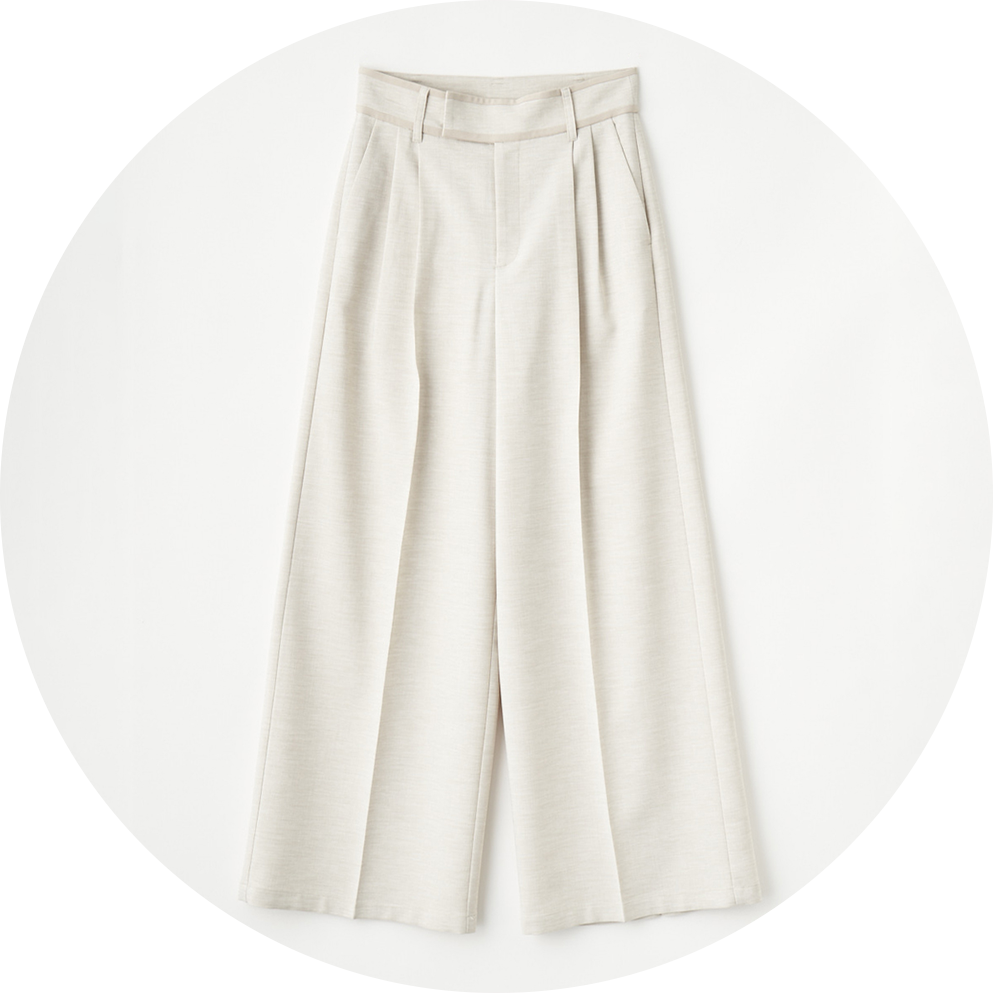 落ち感とリネンライクな素材が、休日のお出かけにも