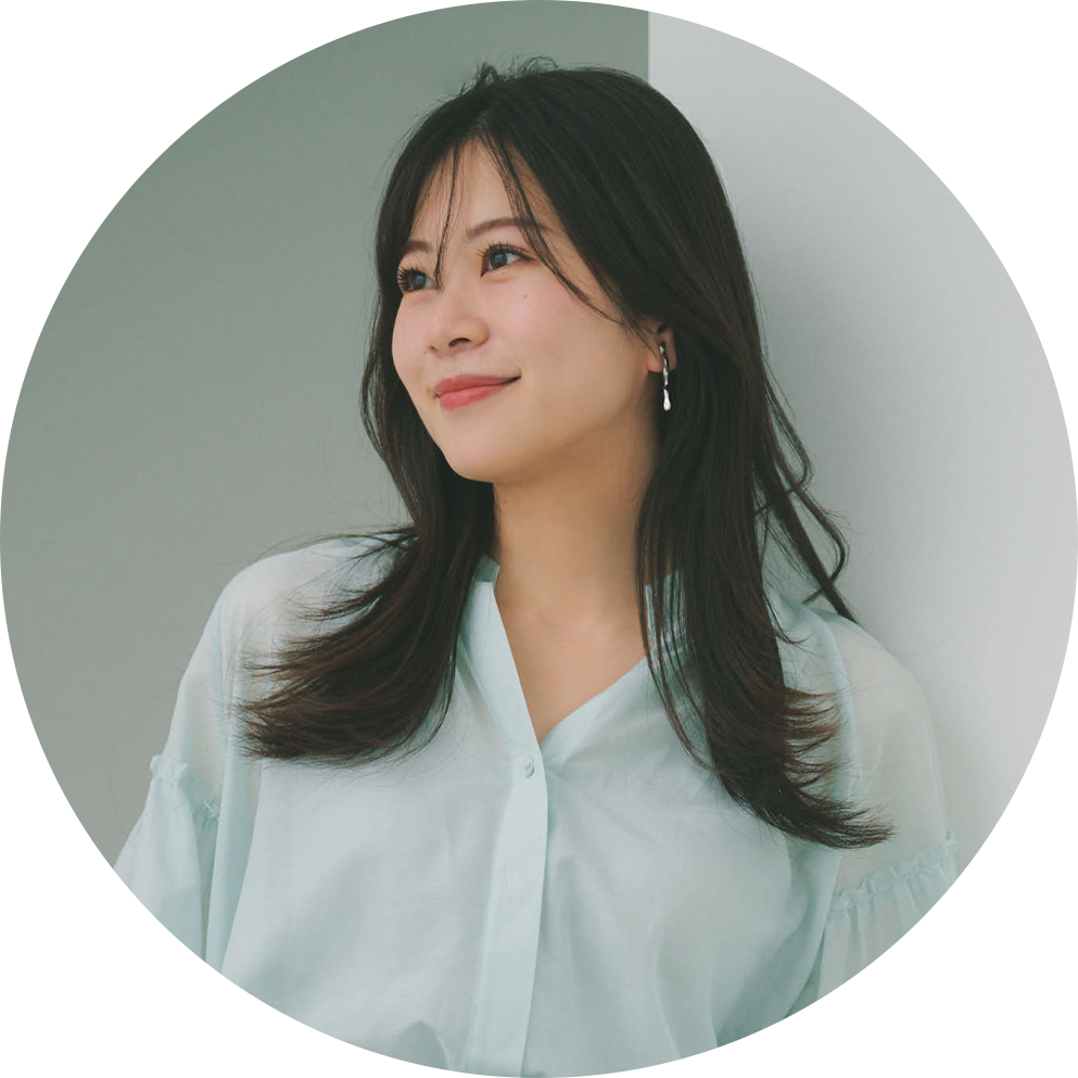 仕込んで女性らしさをON。鮮やかなブルーのニットと