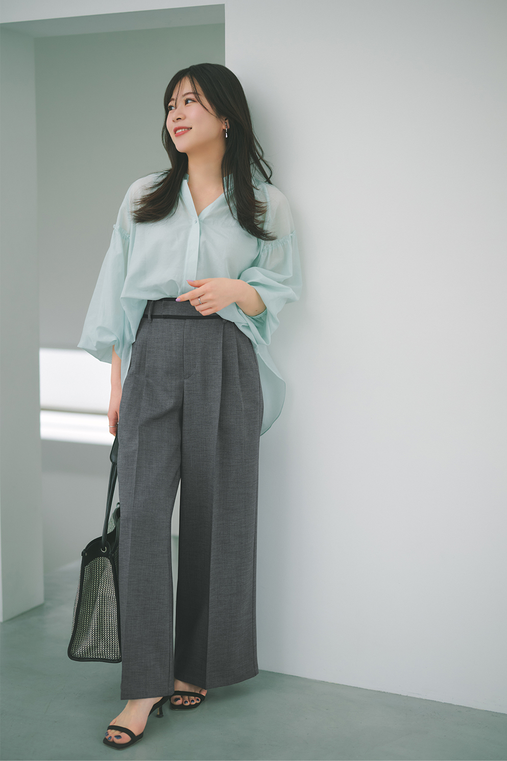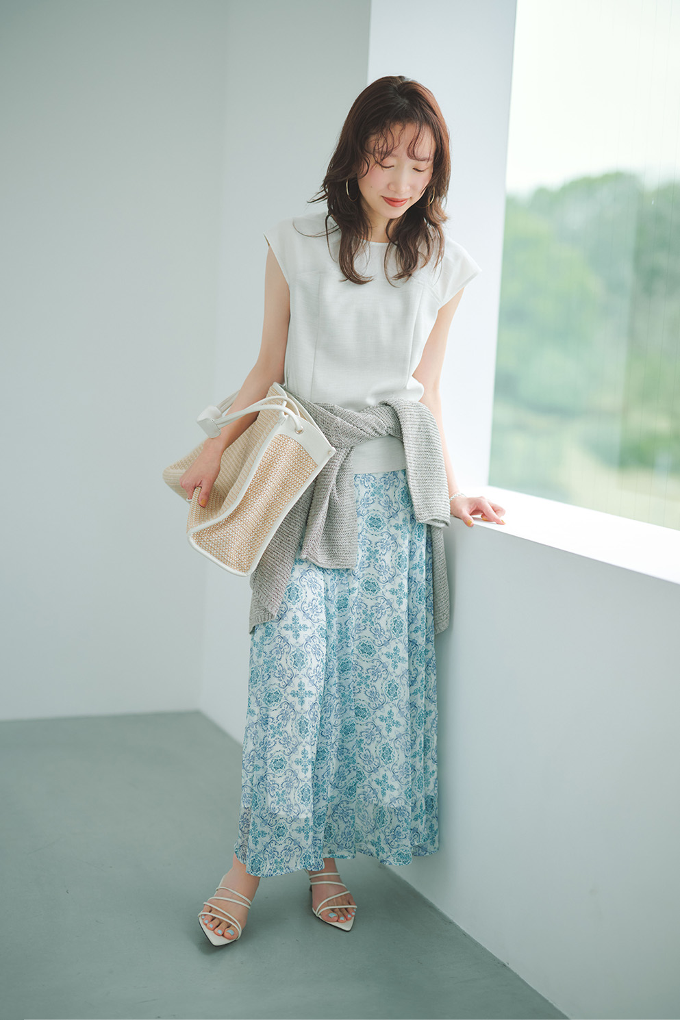 涼やかな色合いでまとめたワンツーコーデを、