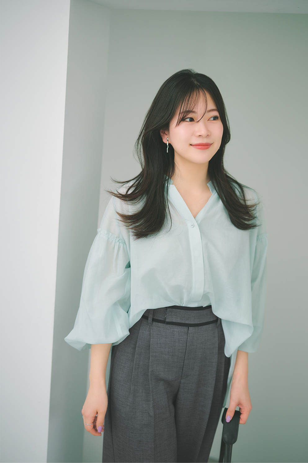 仕上がりに。ベーシックカラーだからこそ、ブラウスの