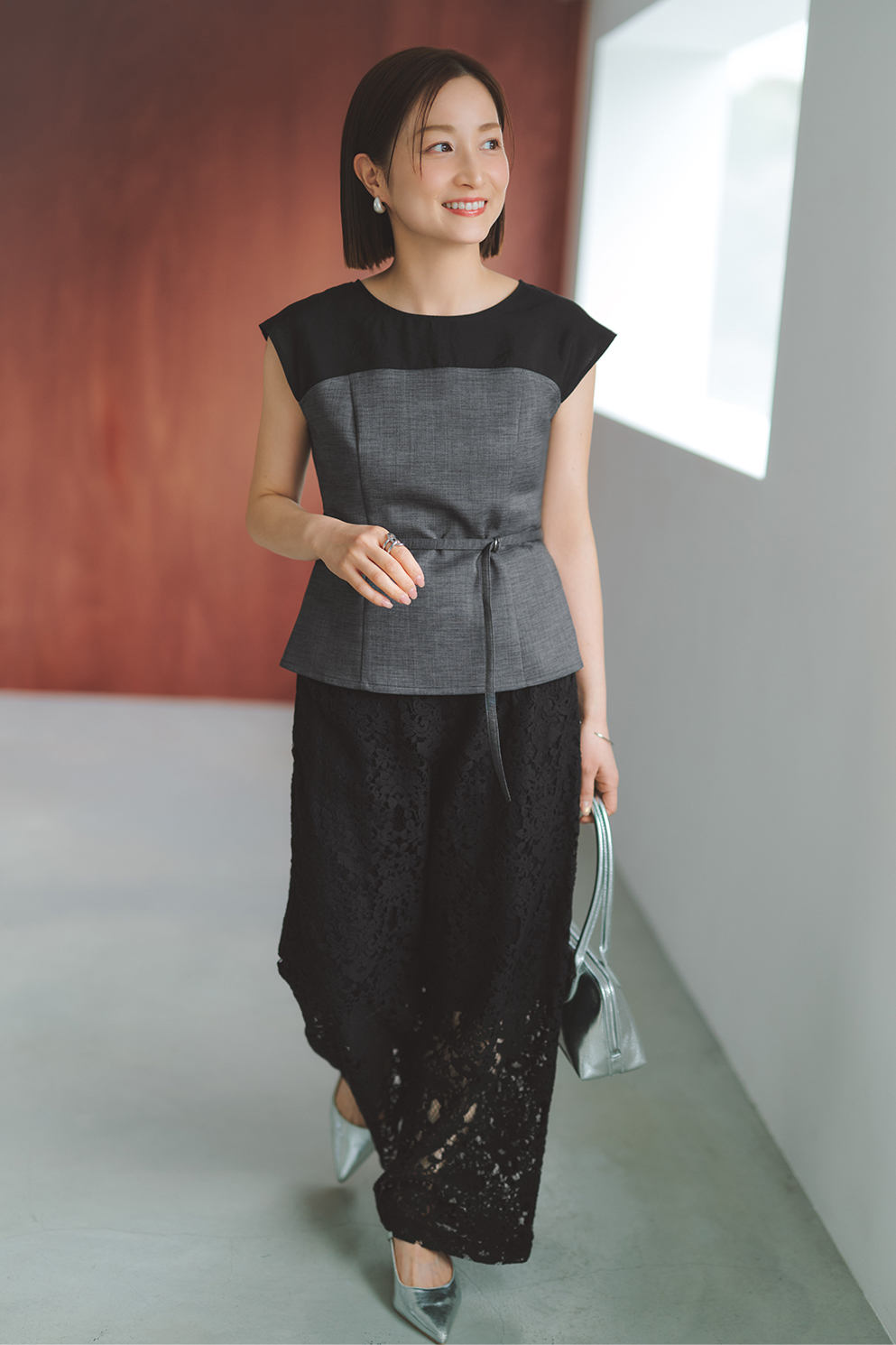 雰囲気に。シルバーのパーツが洗練度を底上げ。