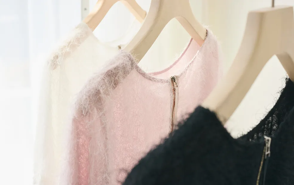 後ろのファスナーは、さりげなく甘さを添えるグログランテープ付き