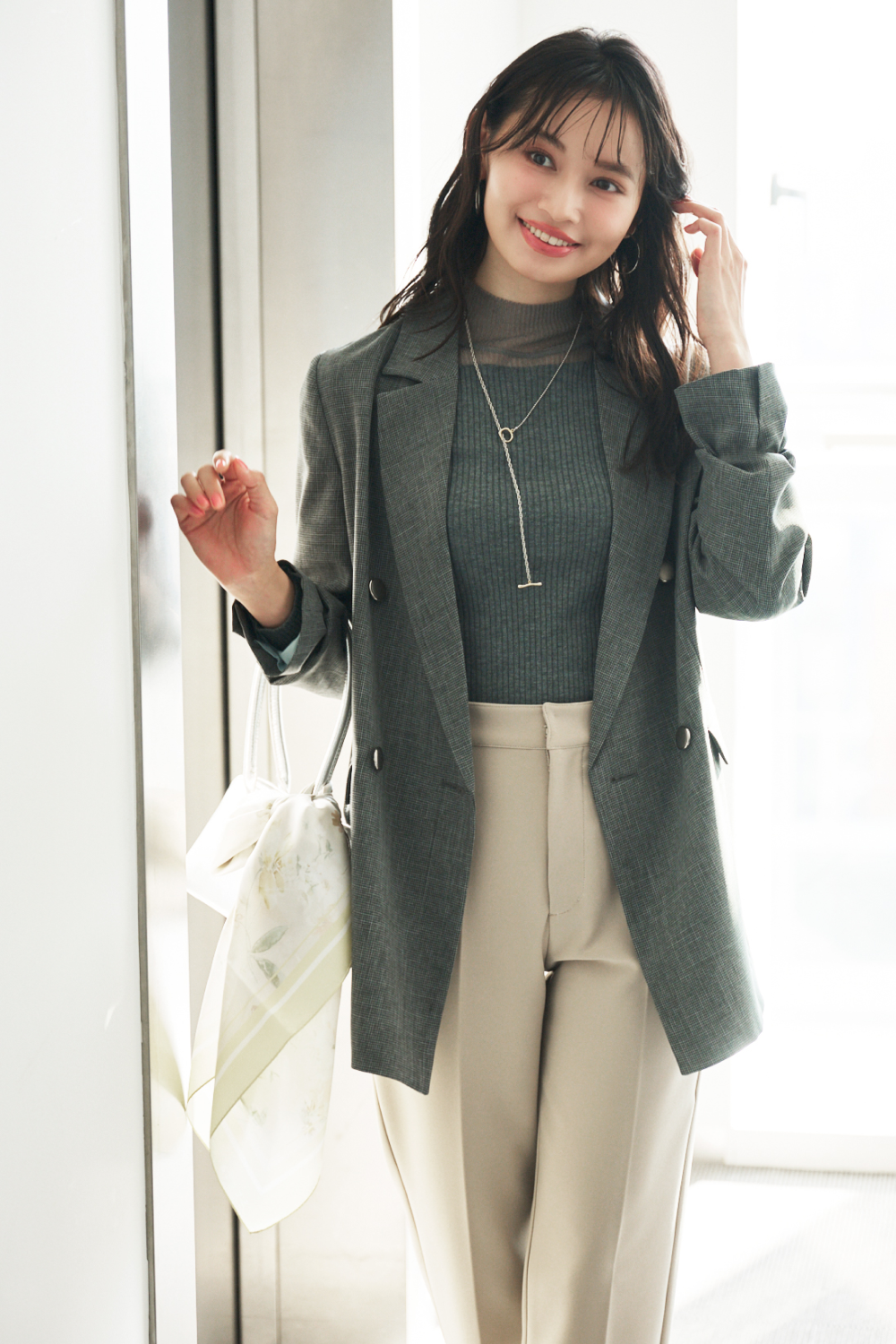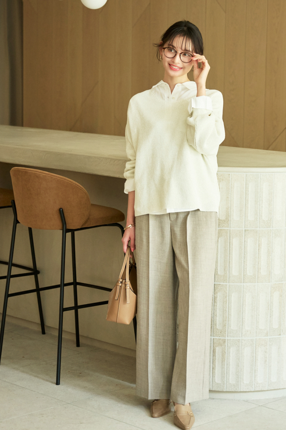 伸縮性が高く、シワになりにくい素材。洗濯機洗いも可能で、毎日のコーデに気軽に取り入れられます。