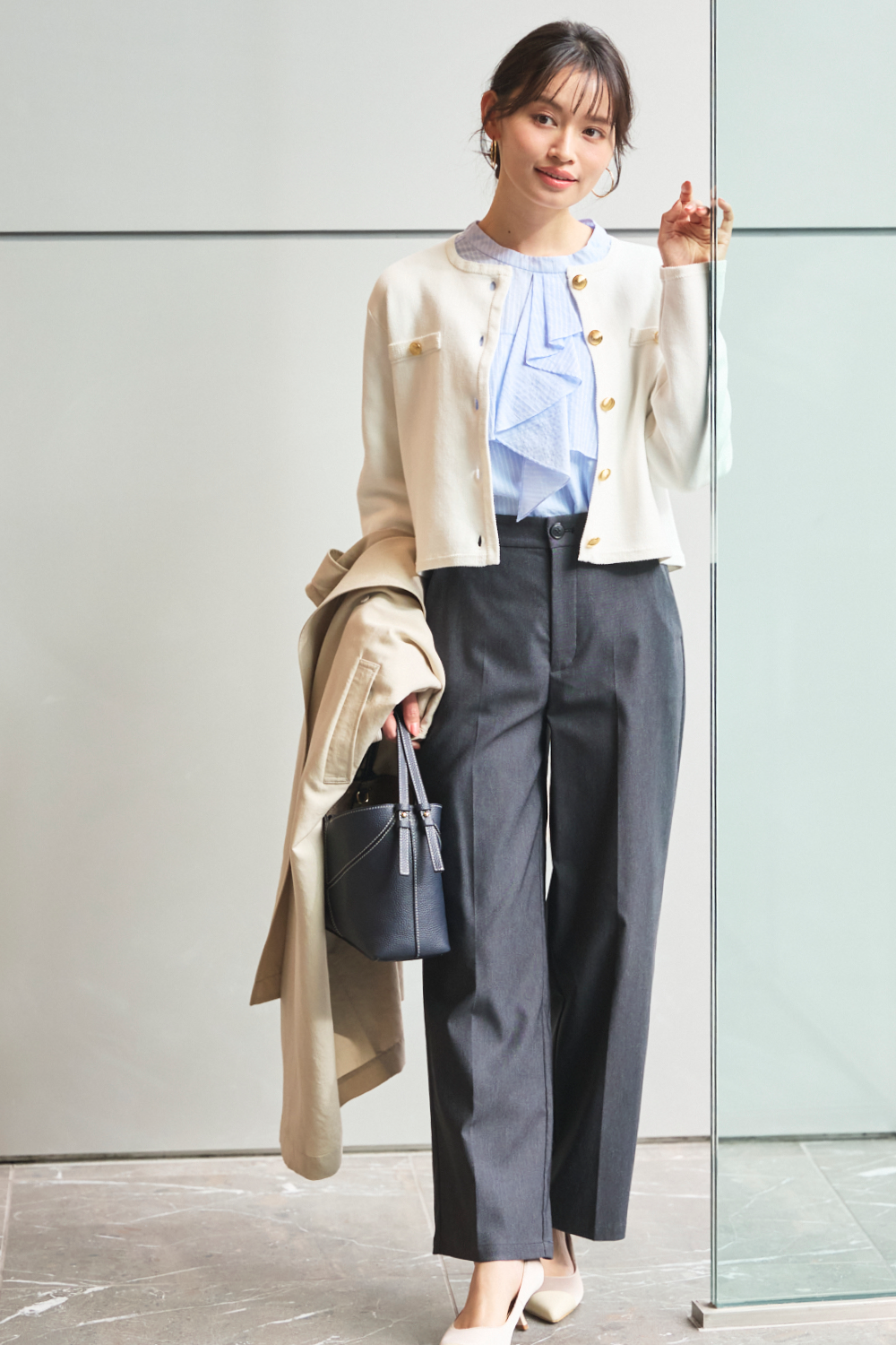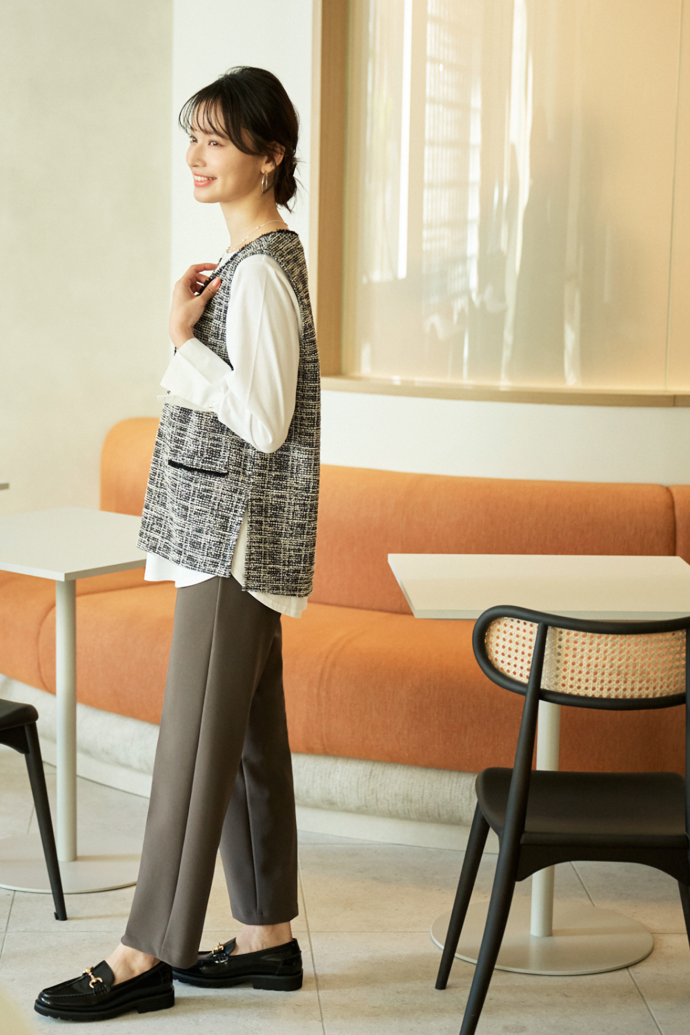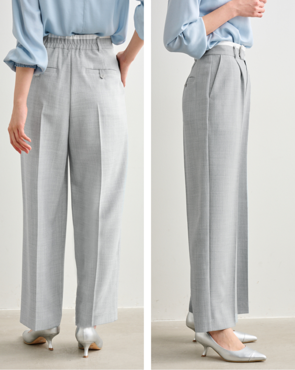 ややワイドなシルエットにセンタープレスをプラスし、リラックス感がありながら、脚を美しく見せるバランスに仕上げました。