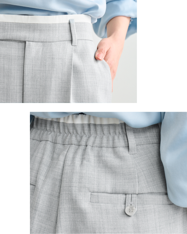 センタープレス×タックで脚が細く見える設計。太ももカバーもばっちり。