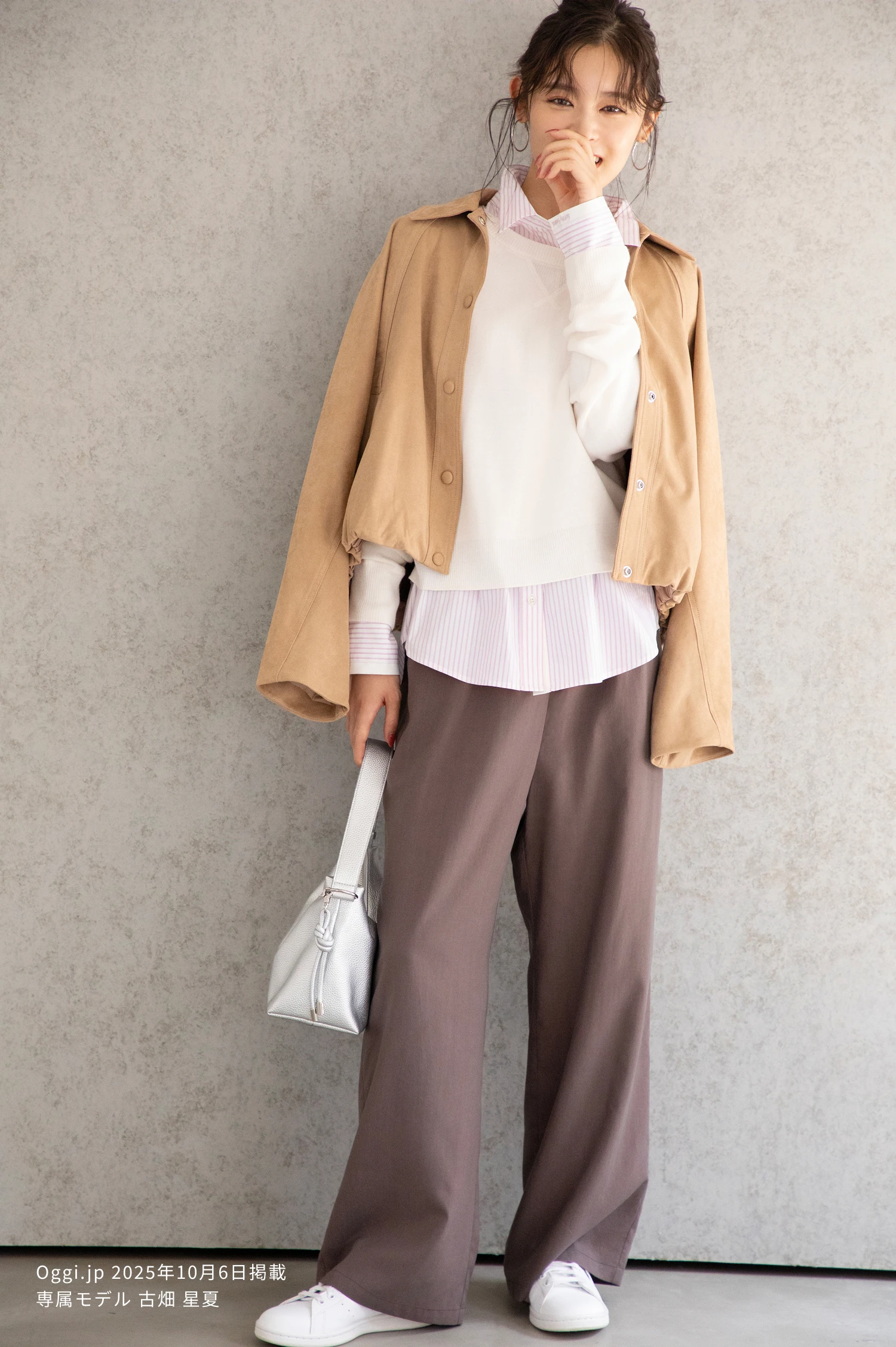 抜け感のあるレイヤードは通勤シーンにもおすすめ。