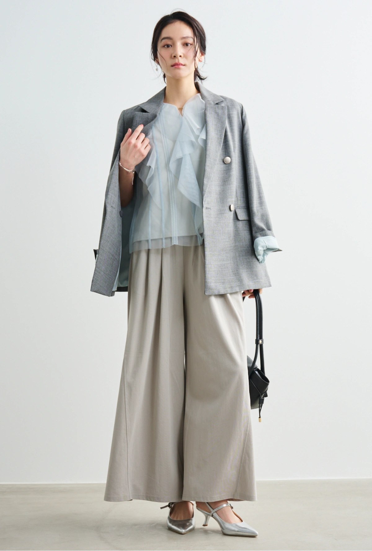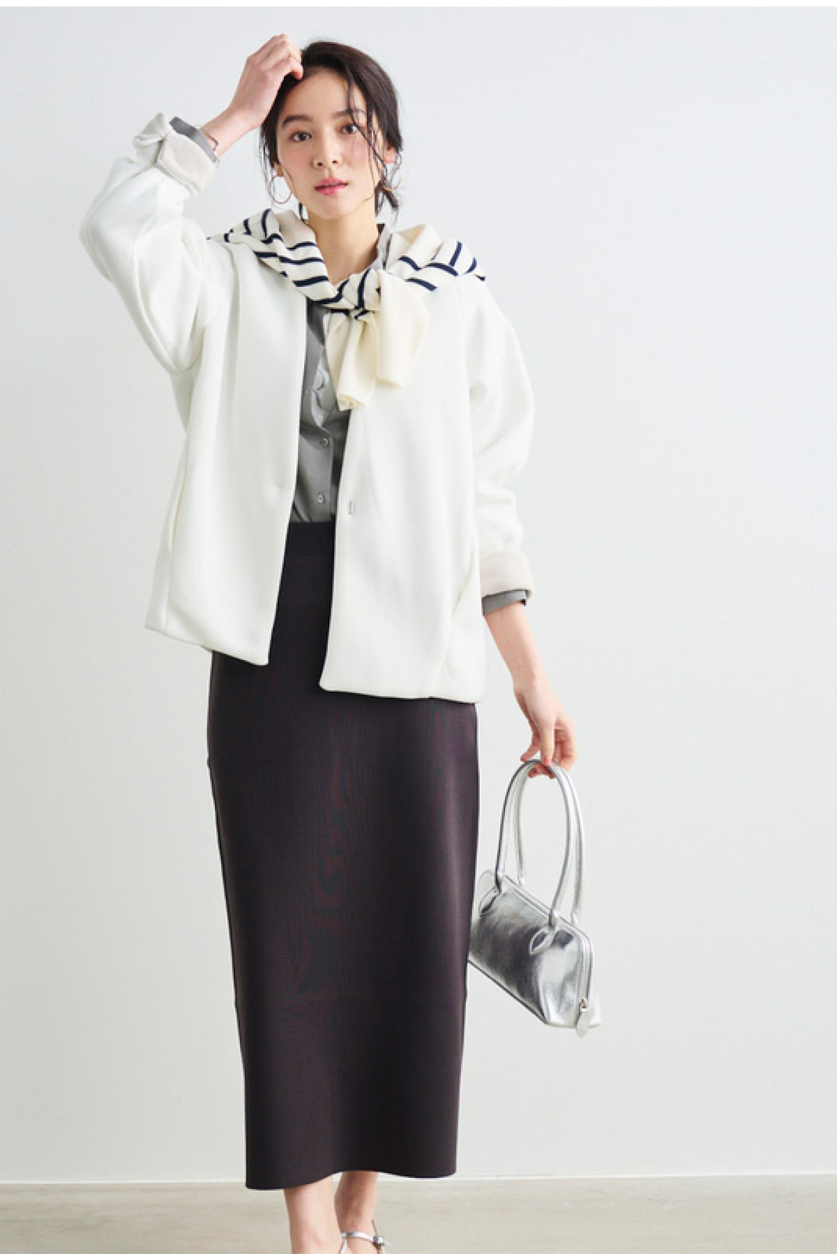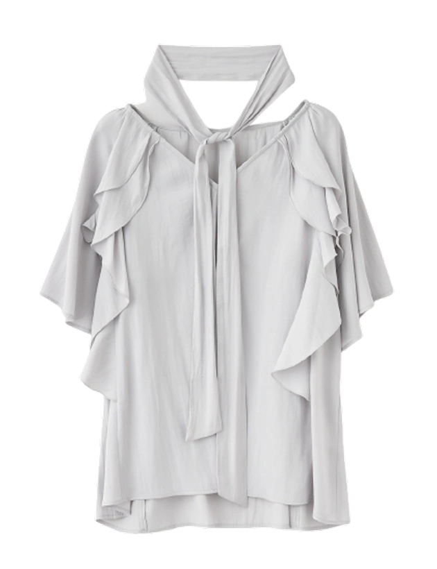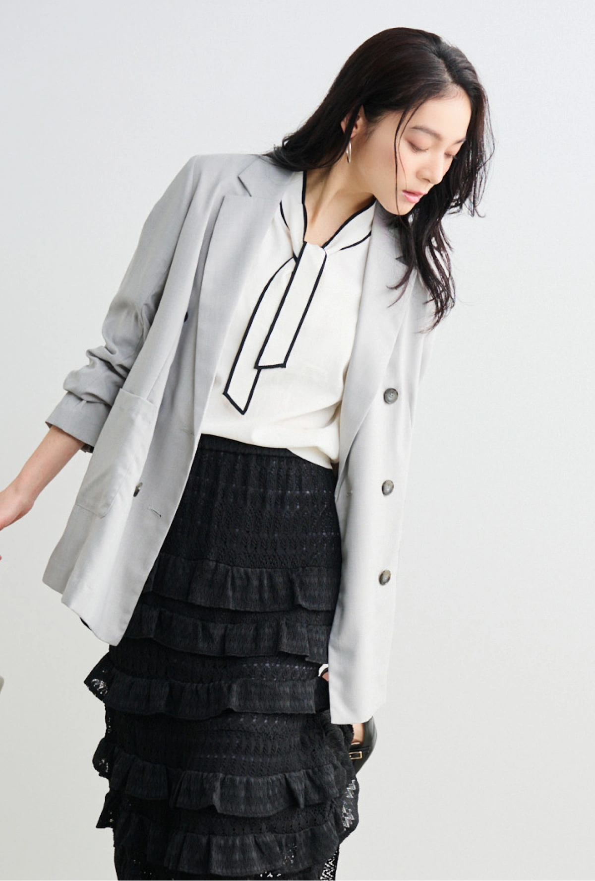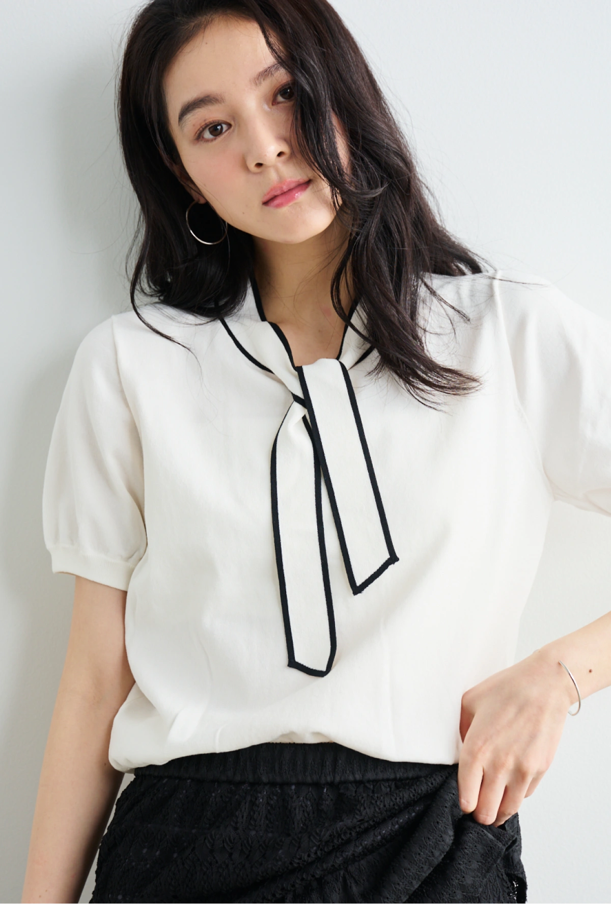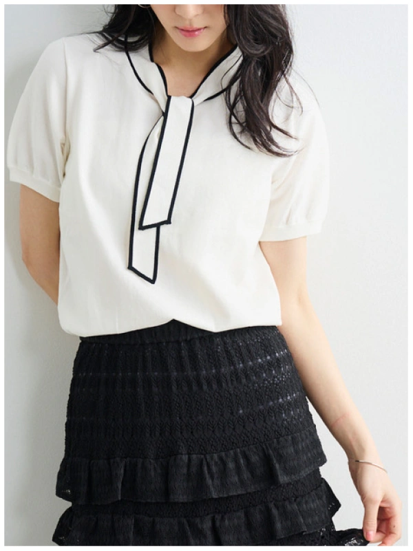 ボウタイディテールで顔周りも華やかに