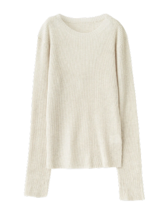 ブルゾンや軽アウターのインにも映え、着こなしの幅が広がる一枚。